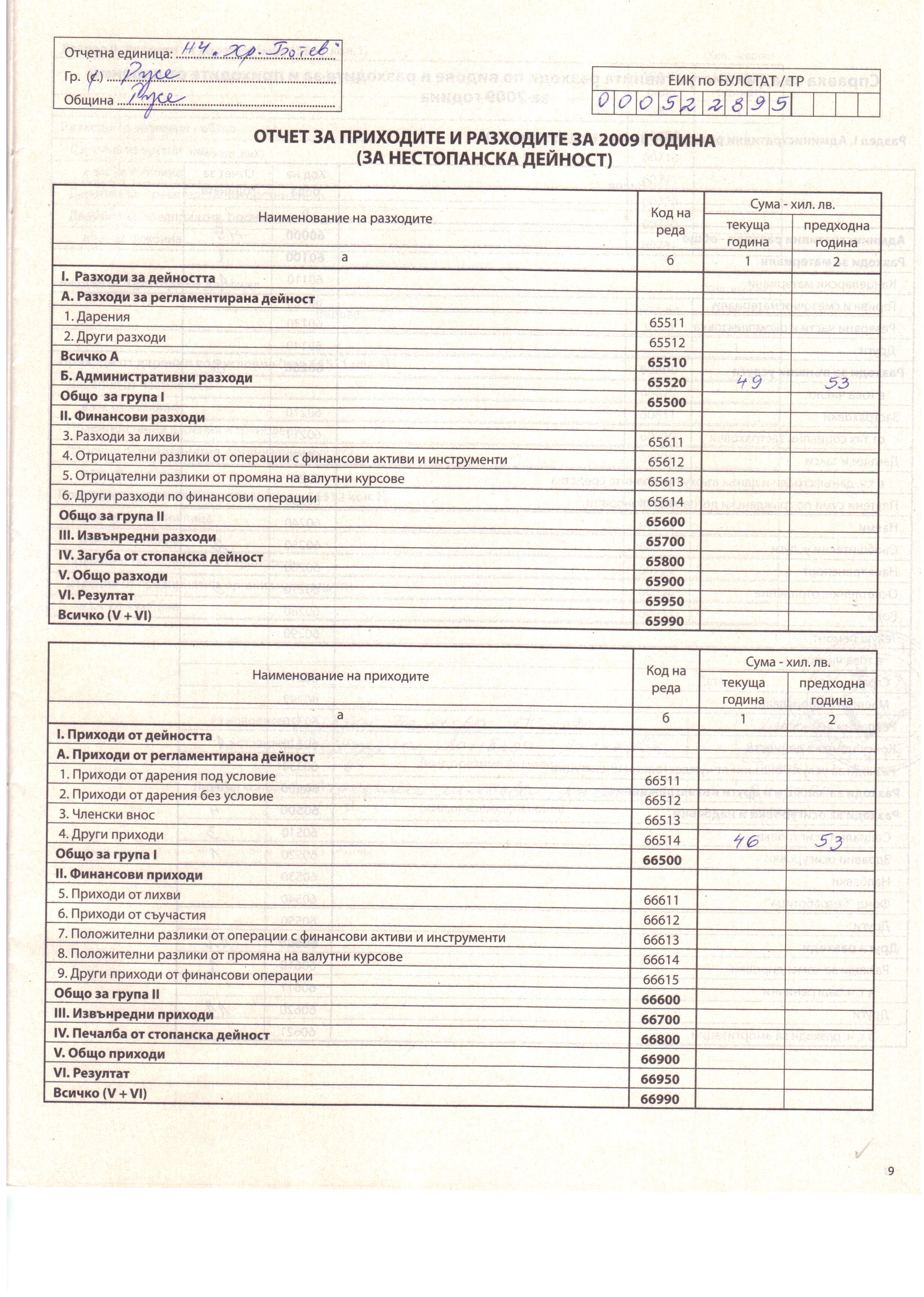 ГФО на НПД "Летка - 91 В.Б. Йорданов" за 2009 г.
