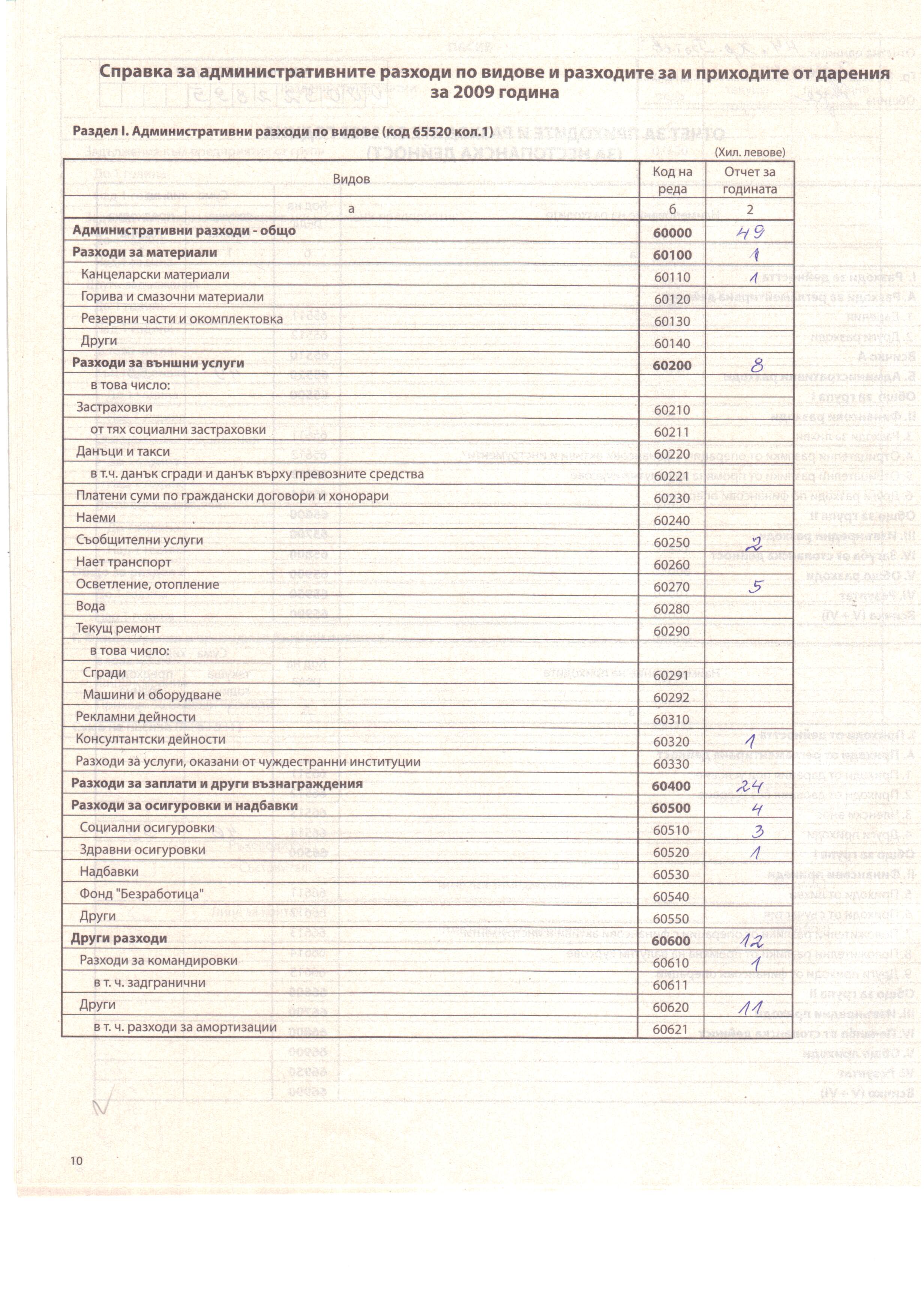 ГФО на ЕТ "Невин Камбурова" за 2009 г.