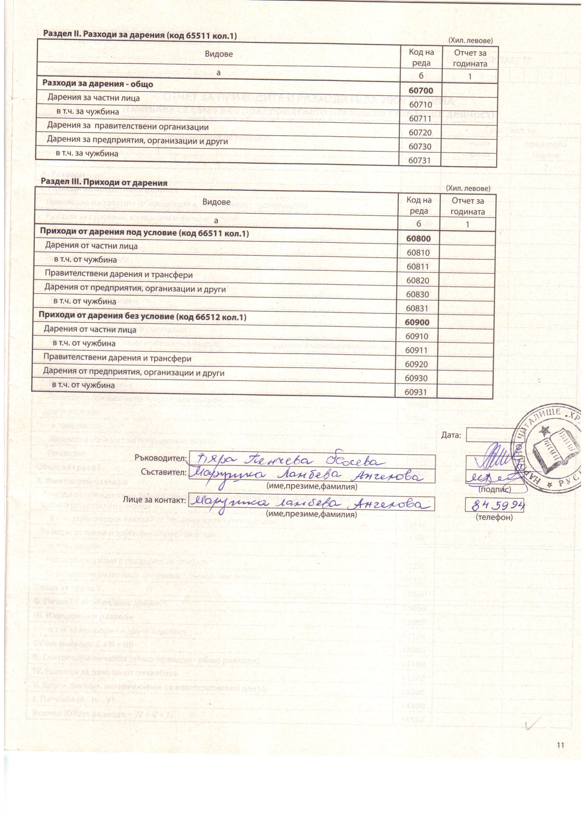 "Сдружение ЦГИКО" - ЕИК/БУЛСТАТ 175460647; седалище и адрес на управление - гр. Варна, ул. Кап.л-т Т. Соларов № 24; представляващ - Весела Панова; съставител на отчетите - Весела Панова