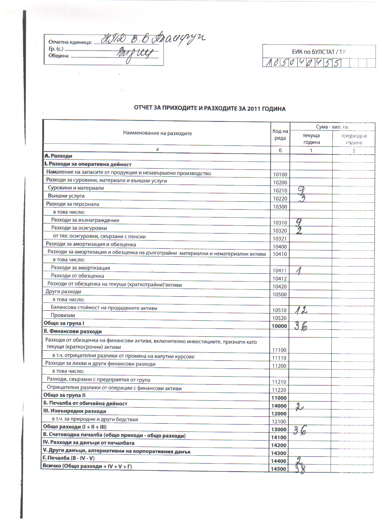 ГФО на "ДАНИНА 2Н - В. ДРАЖЕВ" ЕТ за 2011 г. (06.06.2012)