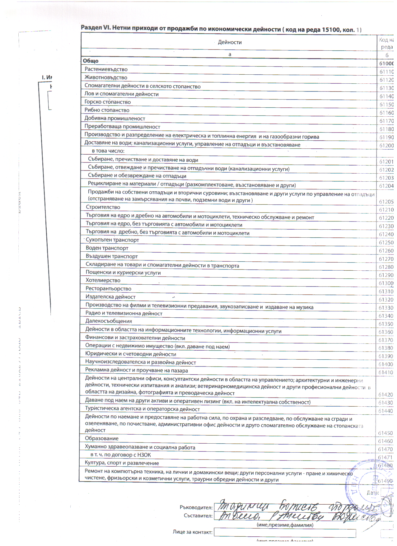 "ВИЗИЯ" ДЗЗД; ЕИК/Булстат 103958728; седалище и адрес на управление - гр. Варна, ж.к. "Чайка", бл. 57, ап. 46; представляващ - Нели Нешкова; съставител на отчетите - Соня Григорова