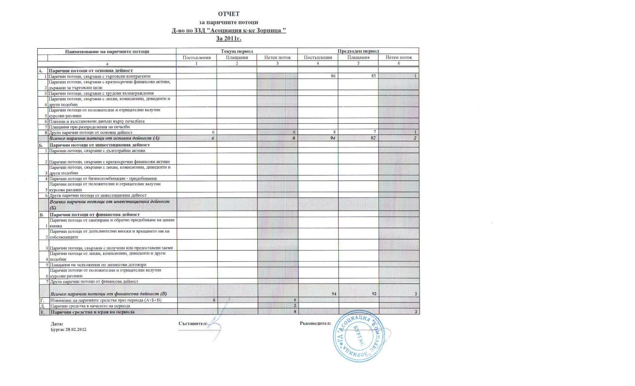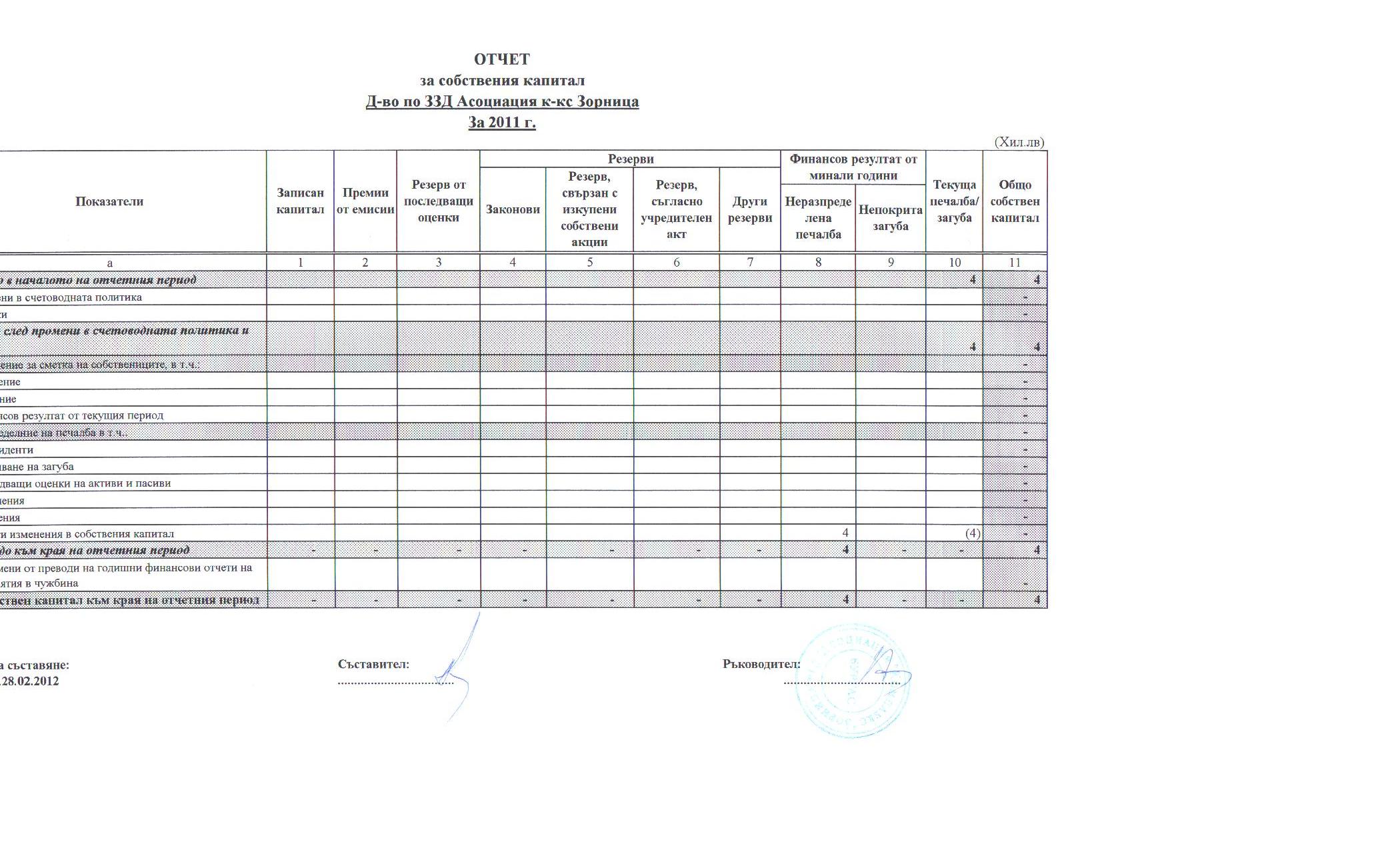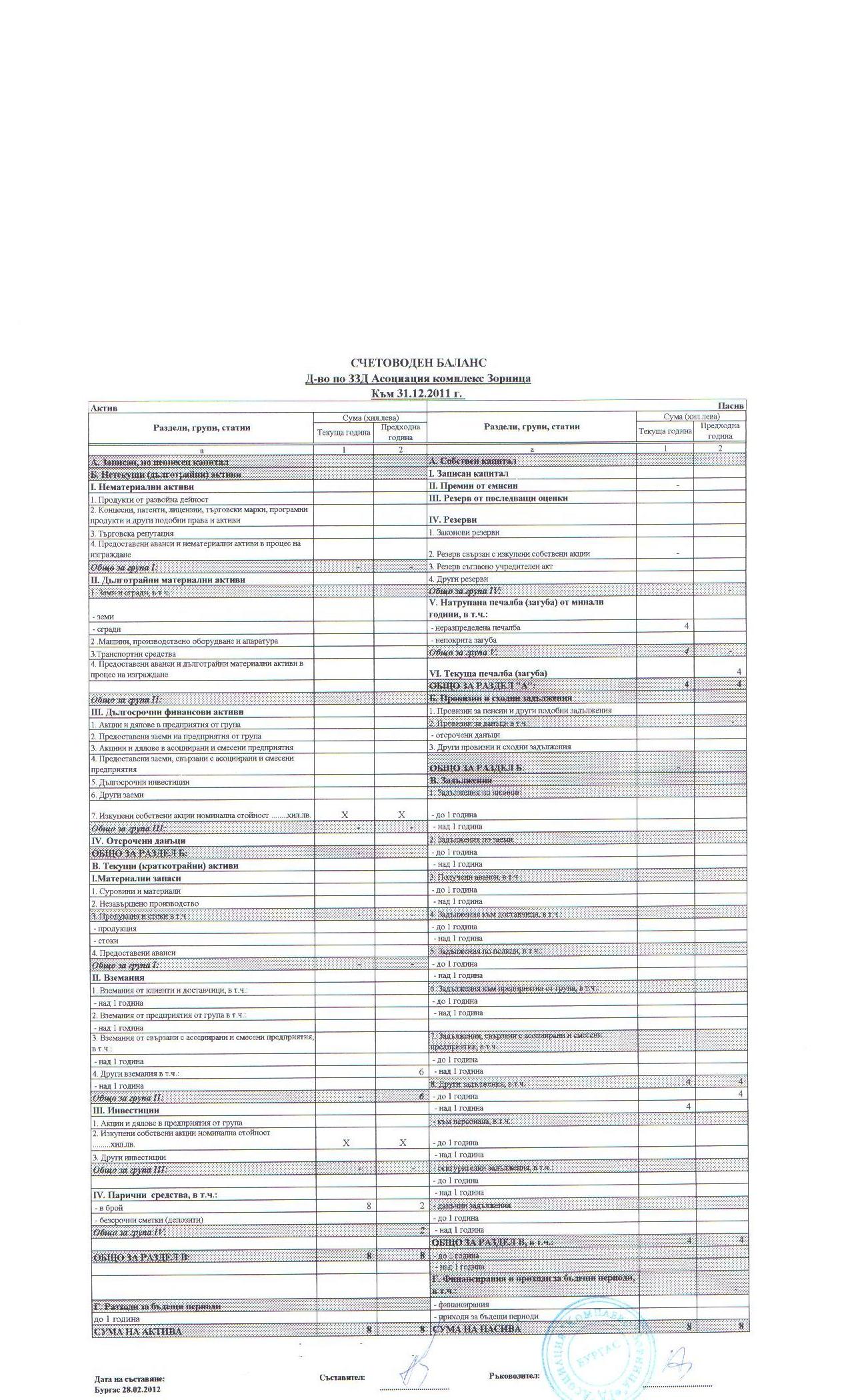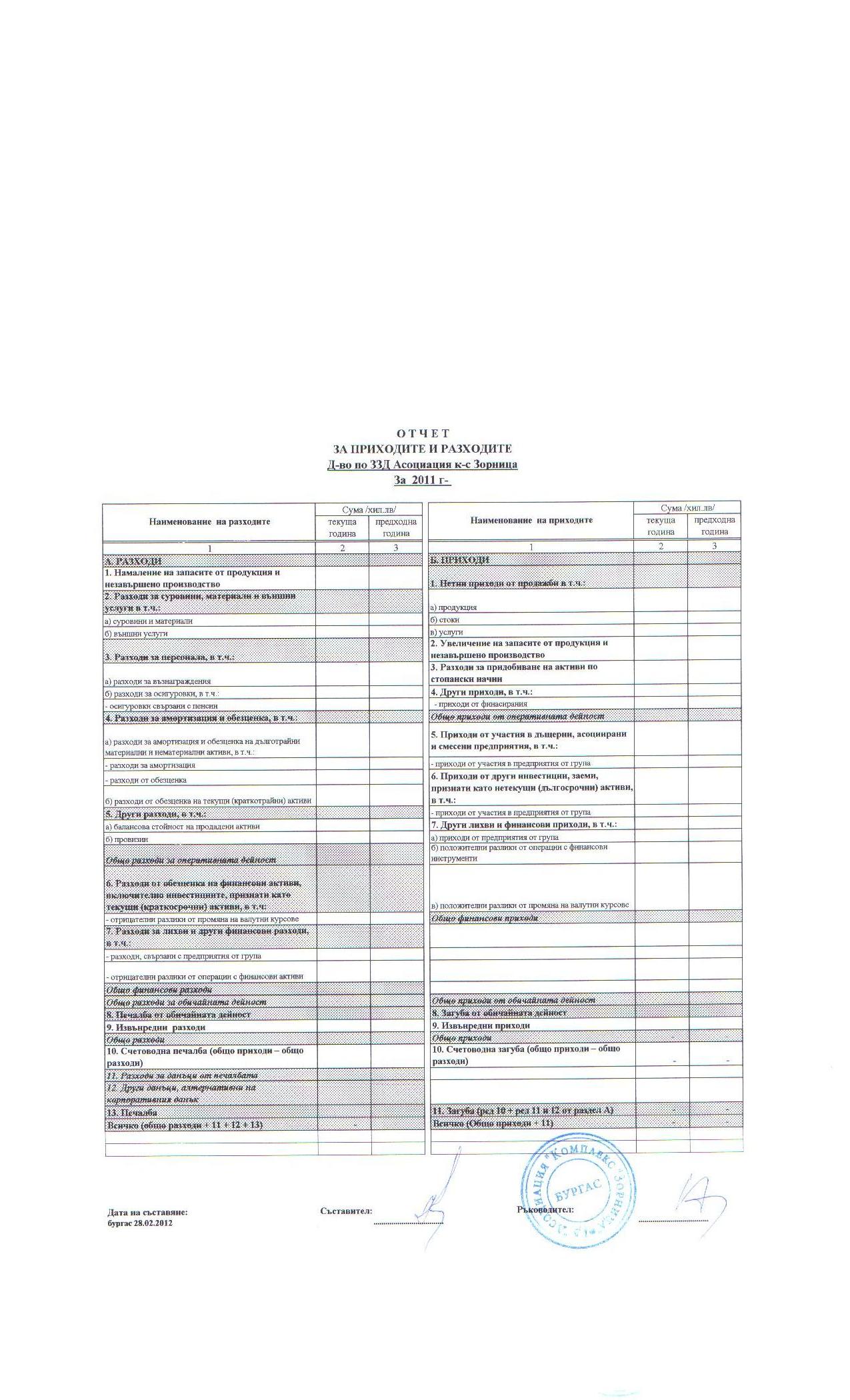 ГФО на ДРУЖЕСТВО ПО ЗЗД "АСОЦИАЦИЯ К-С ЗОРНИЦА" за 2011 г. (28.06.2012)