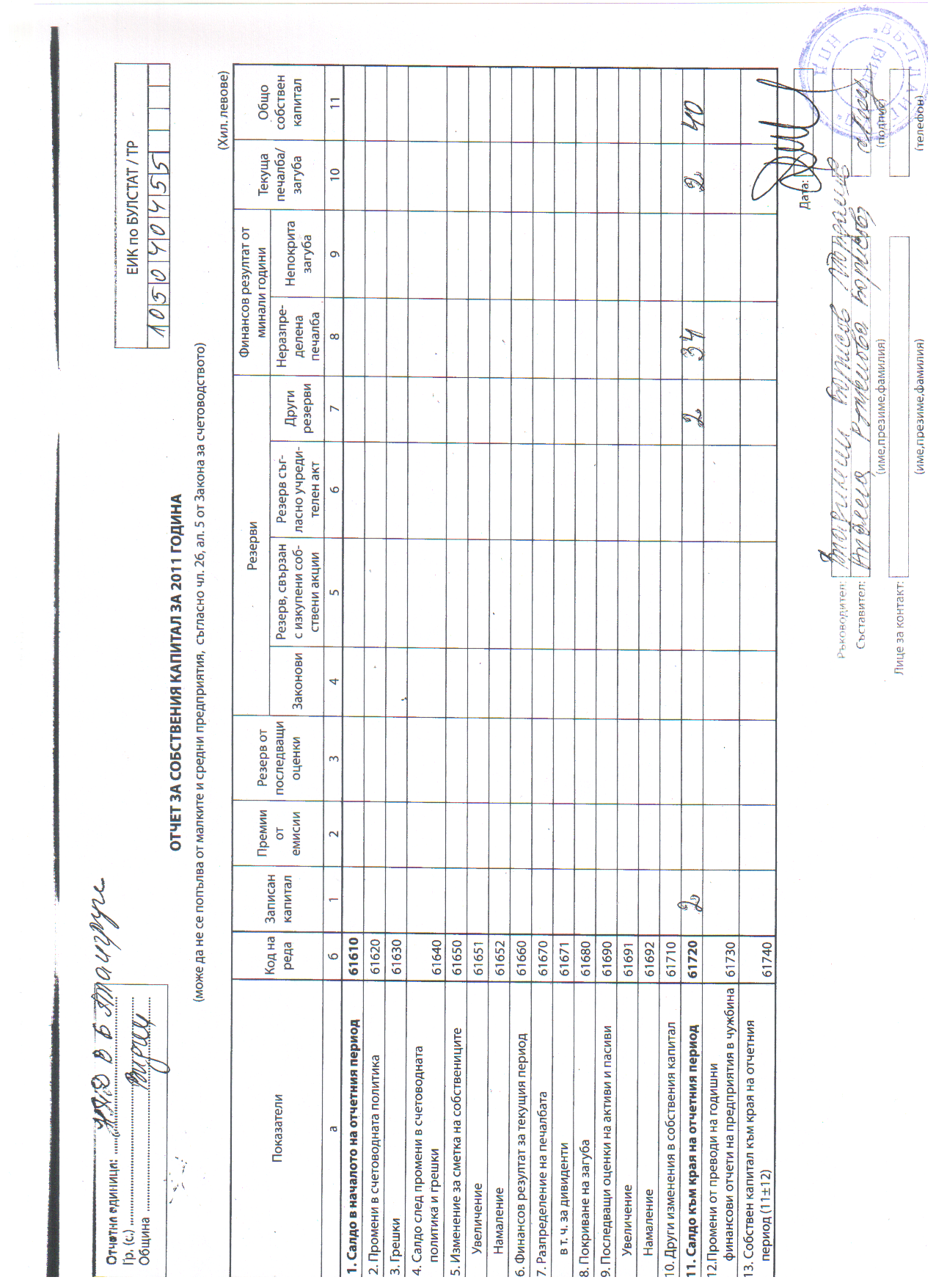 ГФО на "ЛИЛИЯ СЛАВОВА - ТЕРА СП" ЕТ за 2011 г. (18.06.2012)