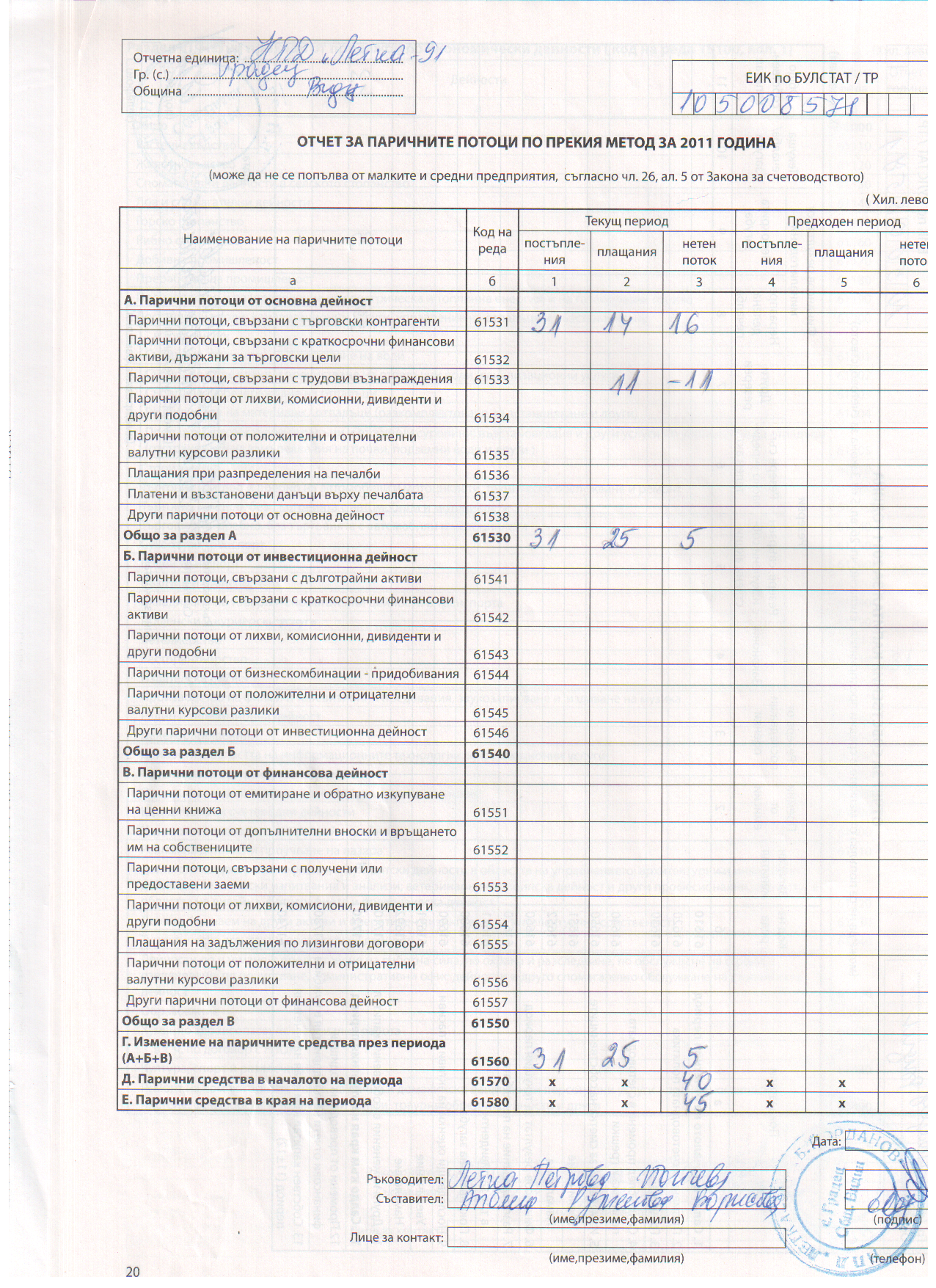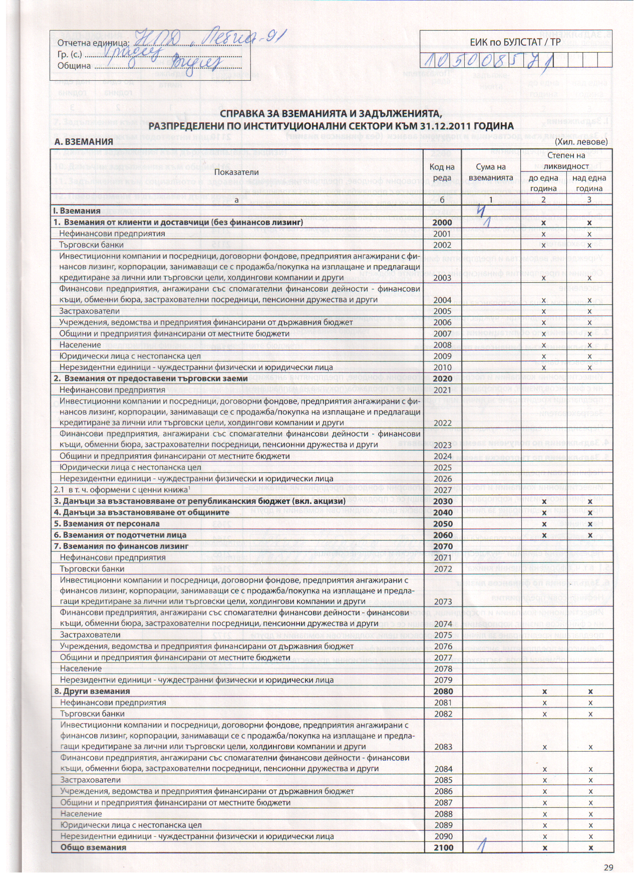 НПД "ЛЕТКА-91 В.Б.ЙОРДАНОВ"; ЕИК/Булстат 105008571; седалище и адрес на управление - гр. Видин, ул. "Градинарска" № 1; представляващ - Летка Петрова Йончева; съставител на отчетите - Албена Руменова Борисова
