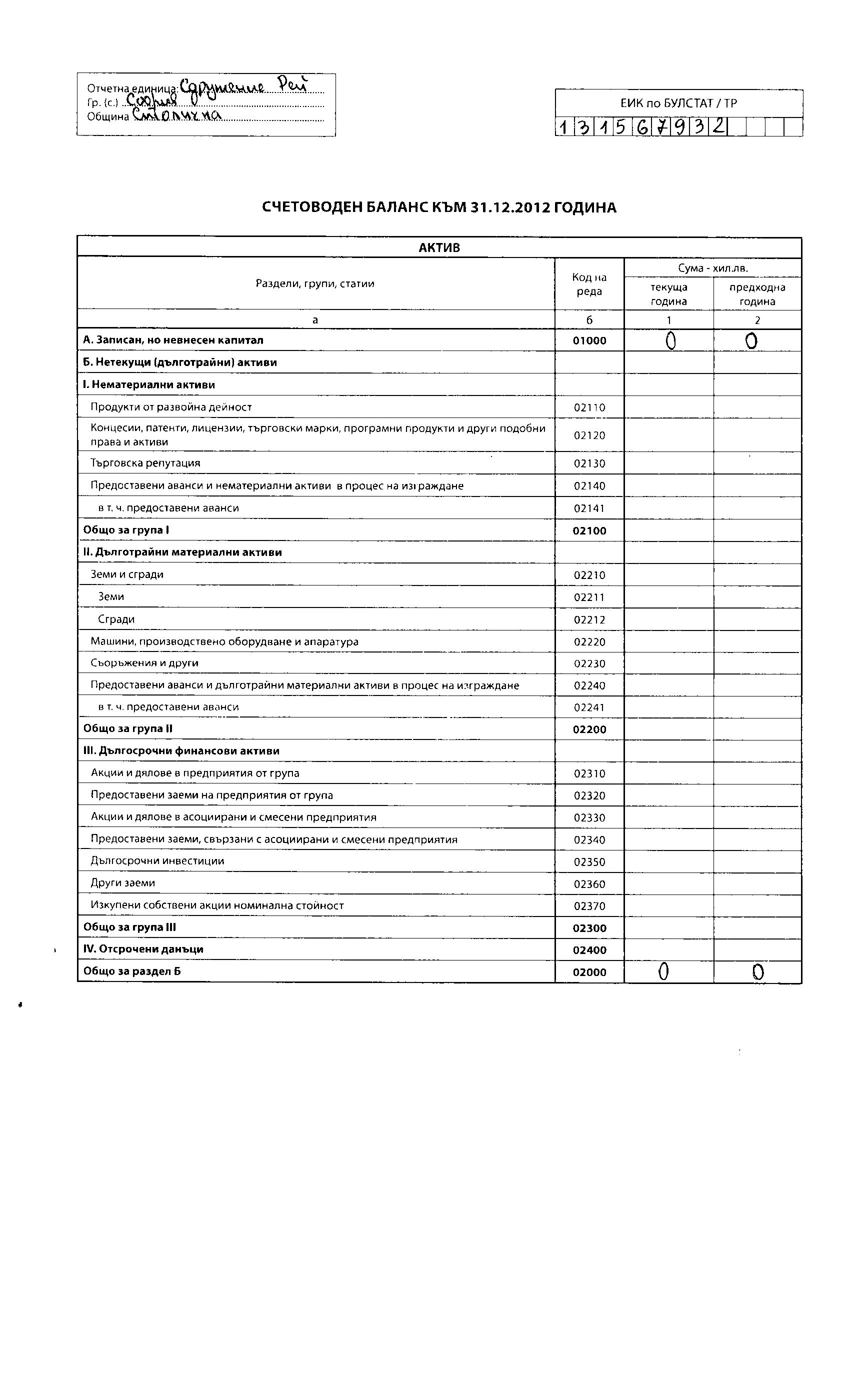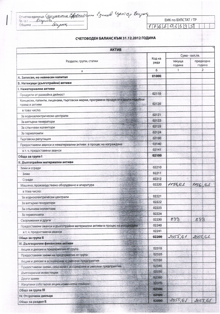 ГФО на АСОЦИАЦИЯ "БОЛКАН ДИНАМИКС" за 2012 г.