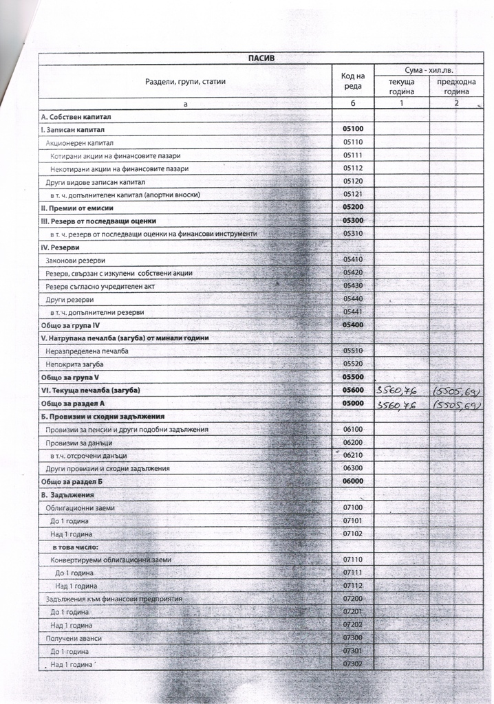 "ЕВРОТРАНСПРОЕКТ 2010"; ЕИК/БУЛСТАТ 175863566; седалище и адрес на управление - гр. София, ул. "Цар Самуил" 108; представляващ - Иван Георгиев Здравчев; съставител на отчетите - Антония Атанасова