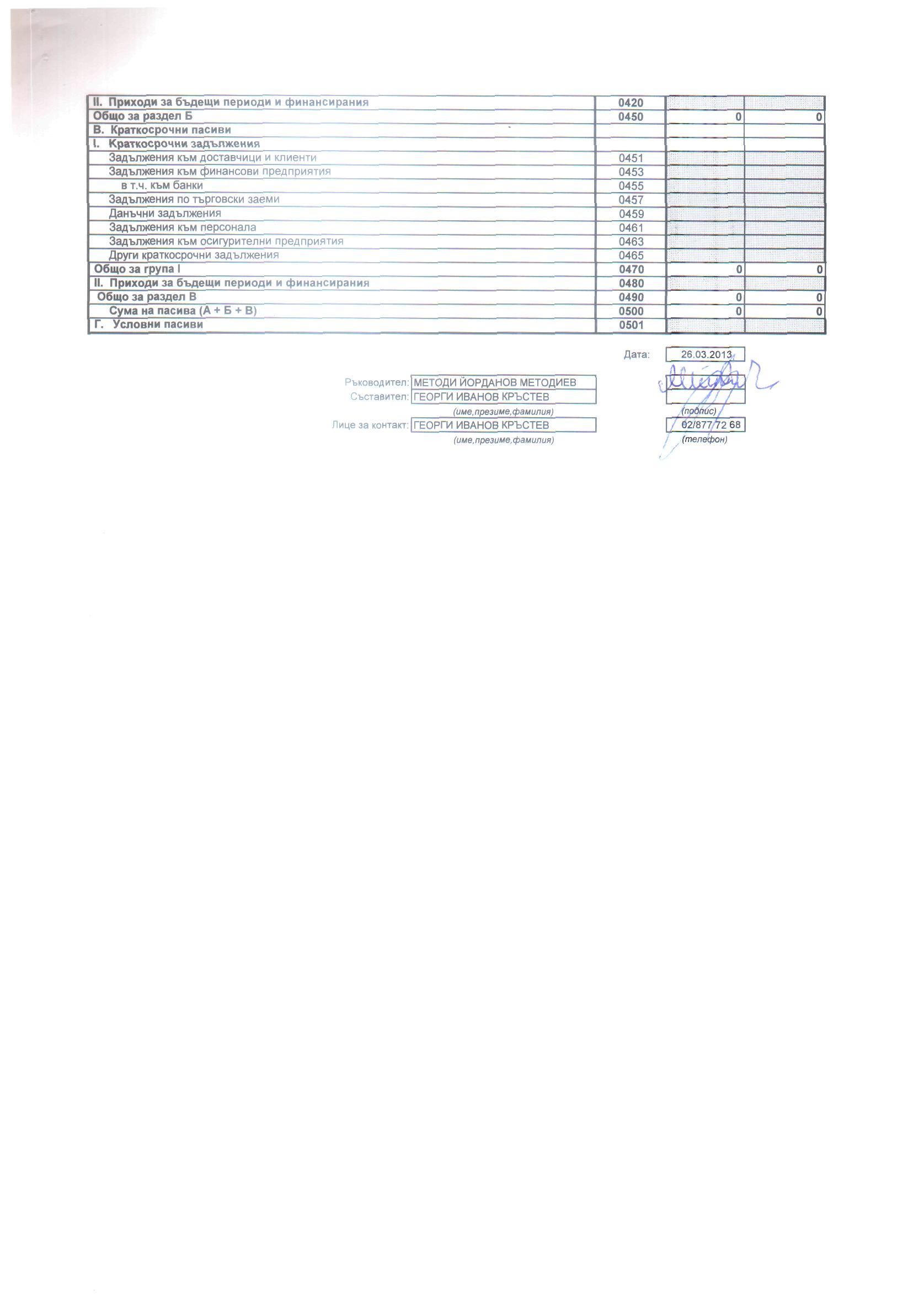 ГФО на "ЖИВКОВИ" ДЗЗД за 2012 г.