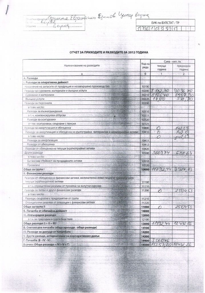 ГФО на ЕВАНГЕЛСКА ПЕТДЕСЯТНА ЦЪРКВА - АХТОПОЛ за 2012 г.