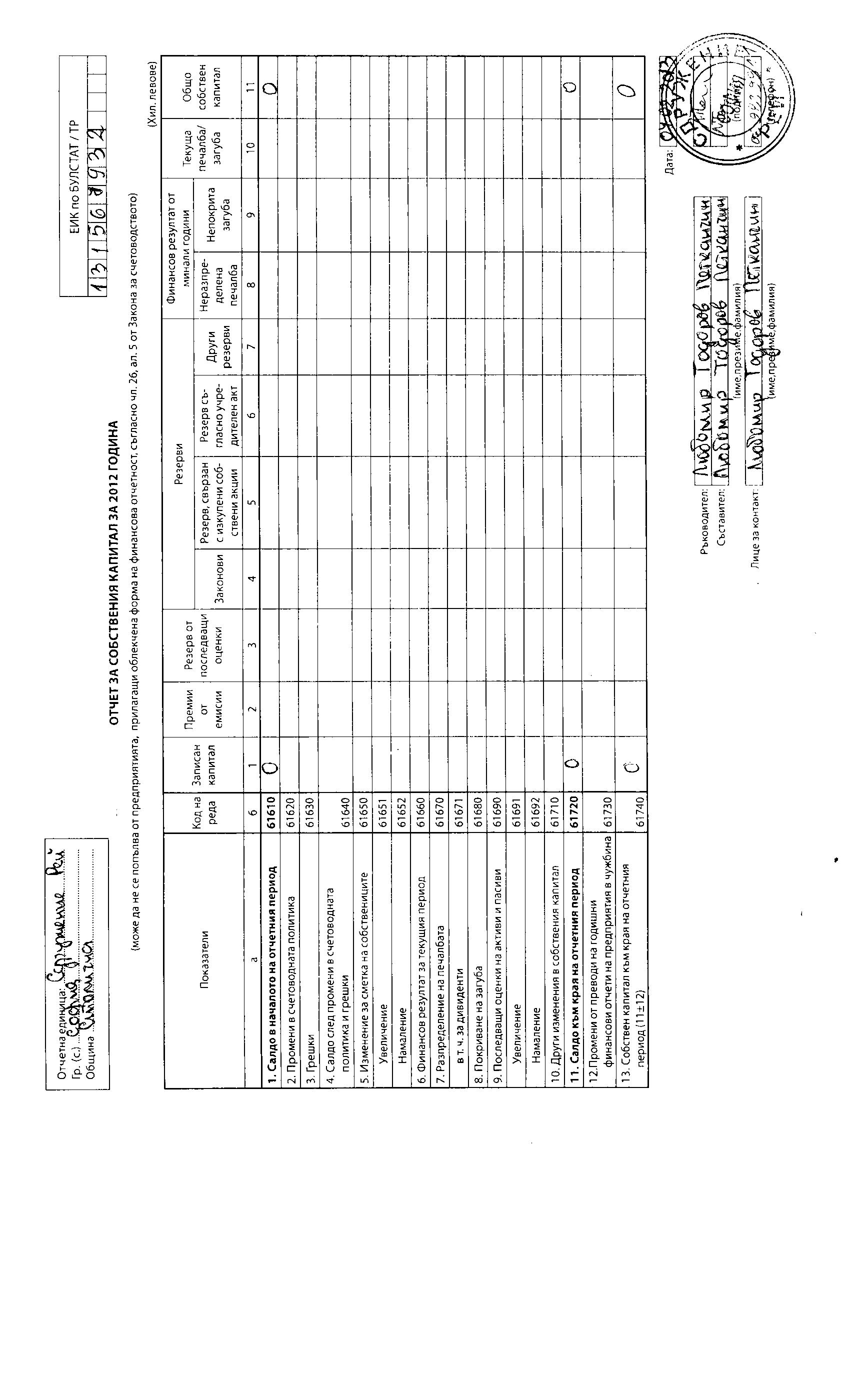 ГФО на "ЯНЕВИ-99-ПАВЛИНКА ЯНЕВА" ЕТ за 2012 г.