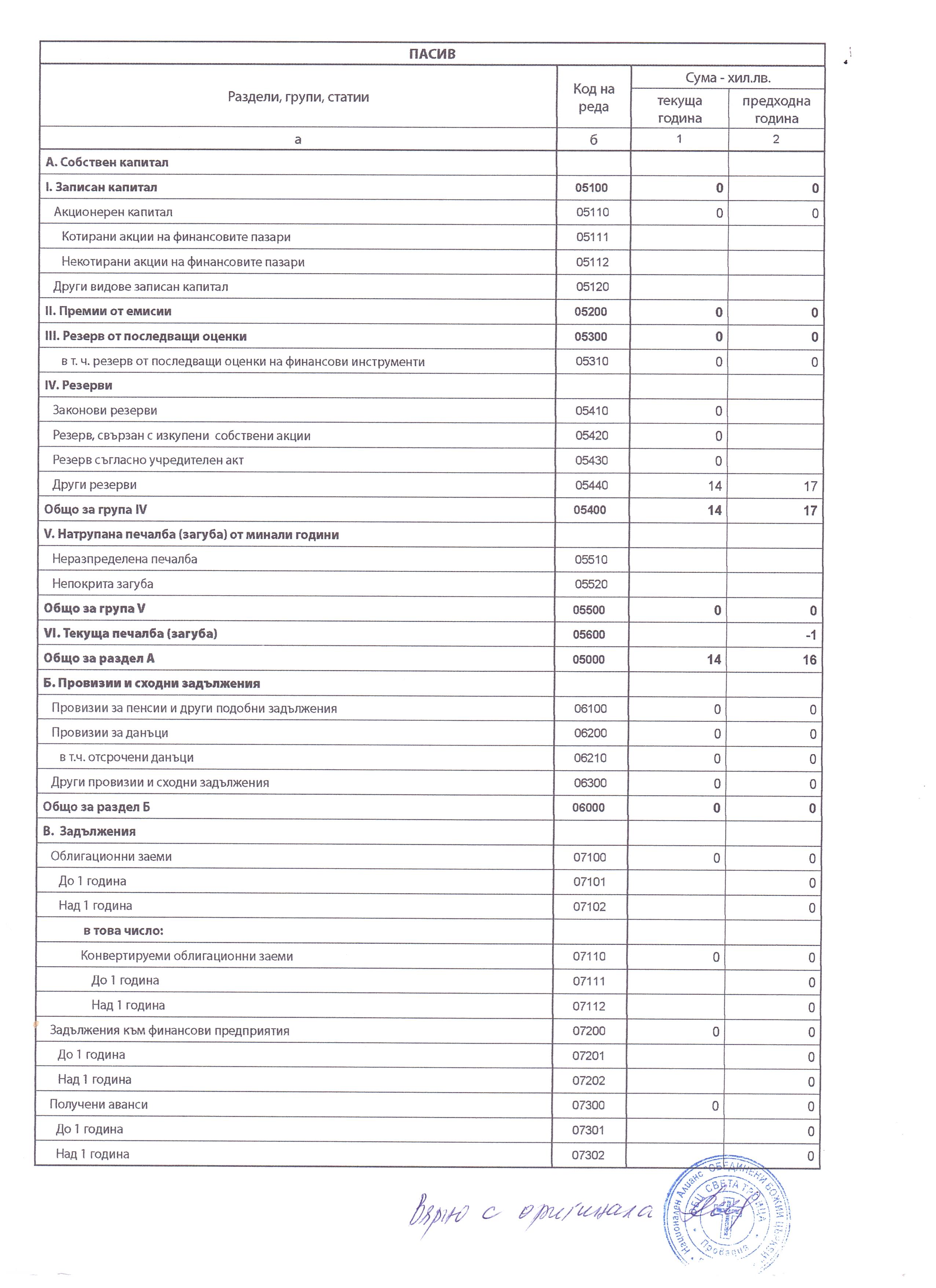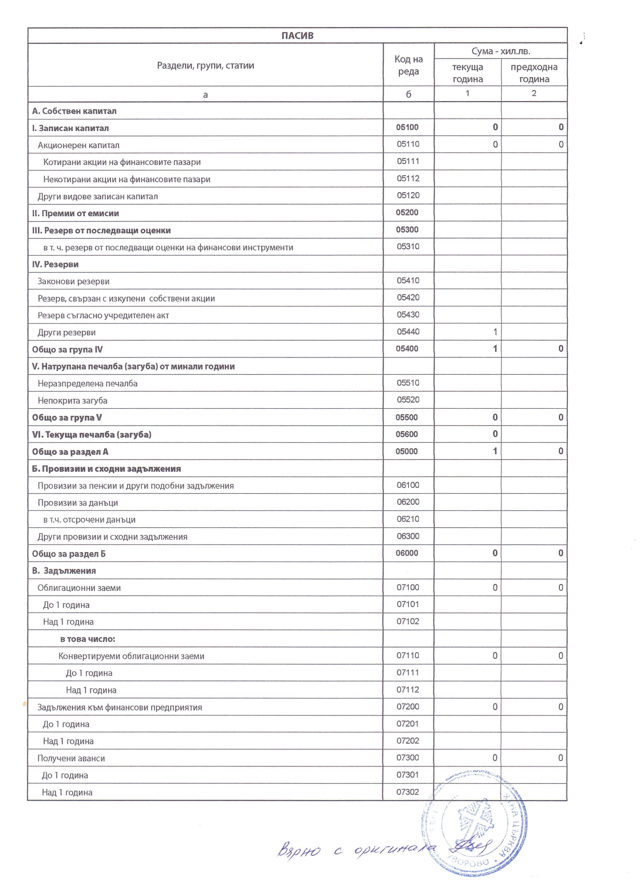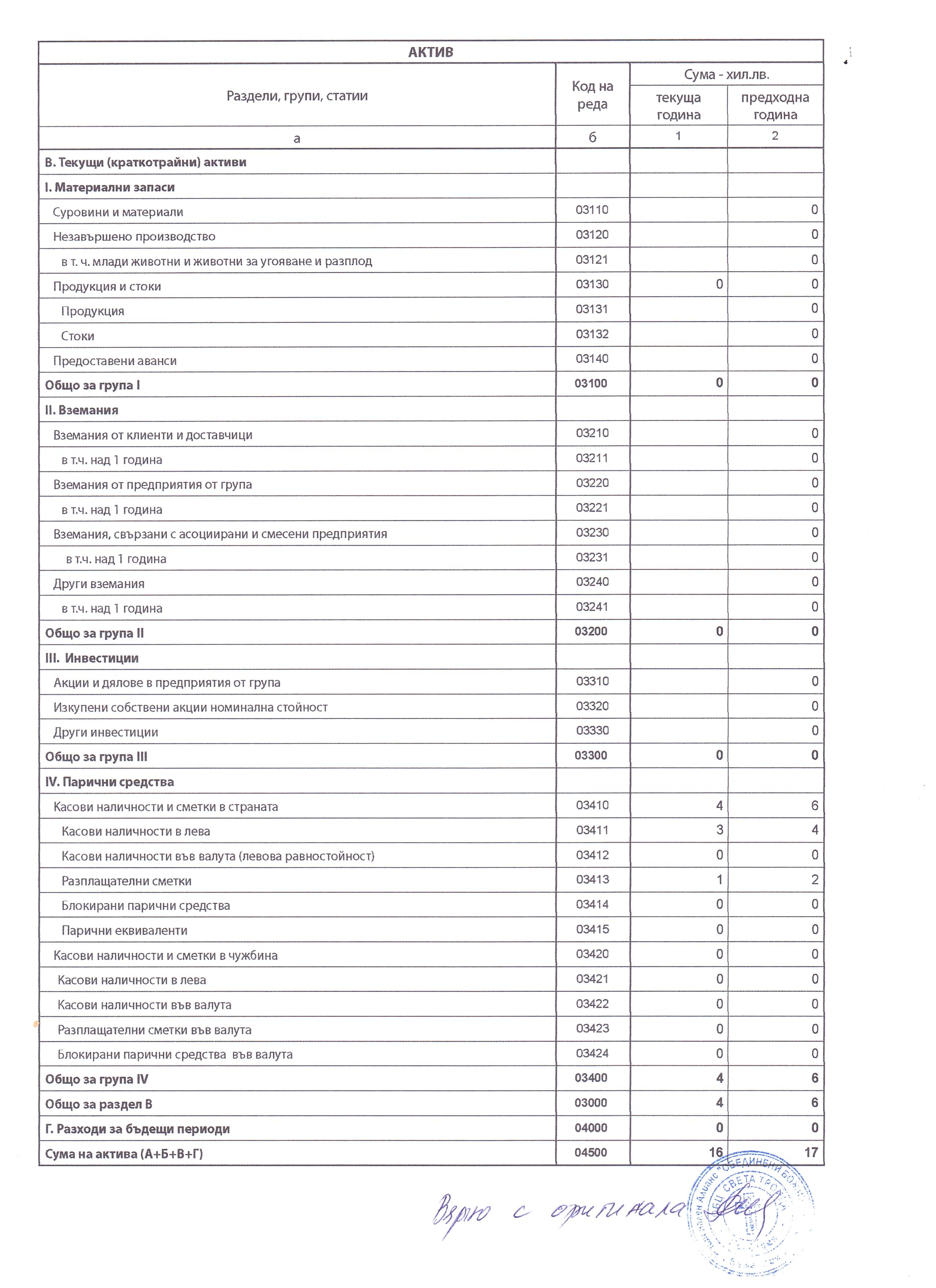 ГФО на 4 ПЛЮС АСЕНОВГРАД ДЗЗД за 2017 г.