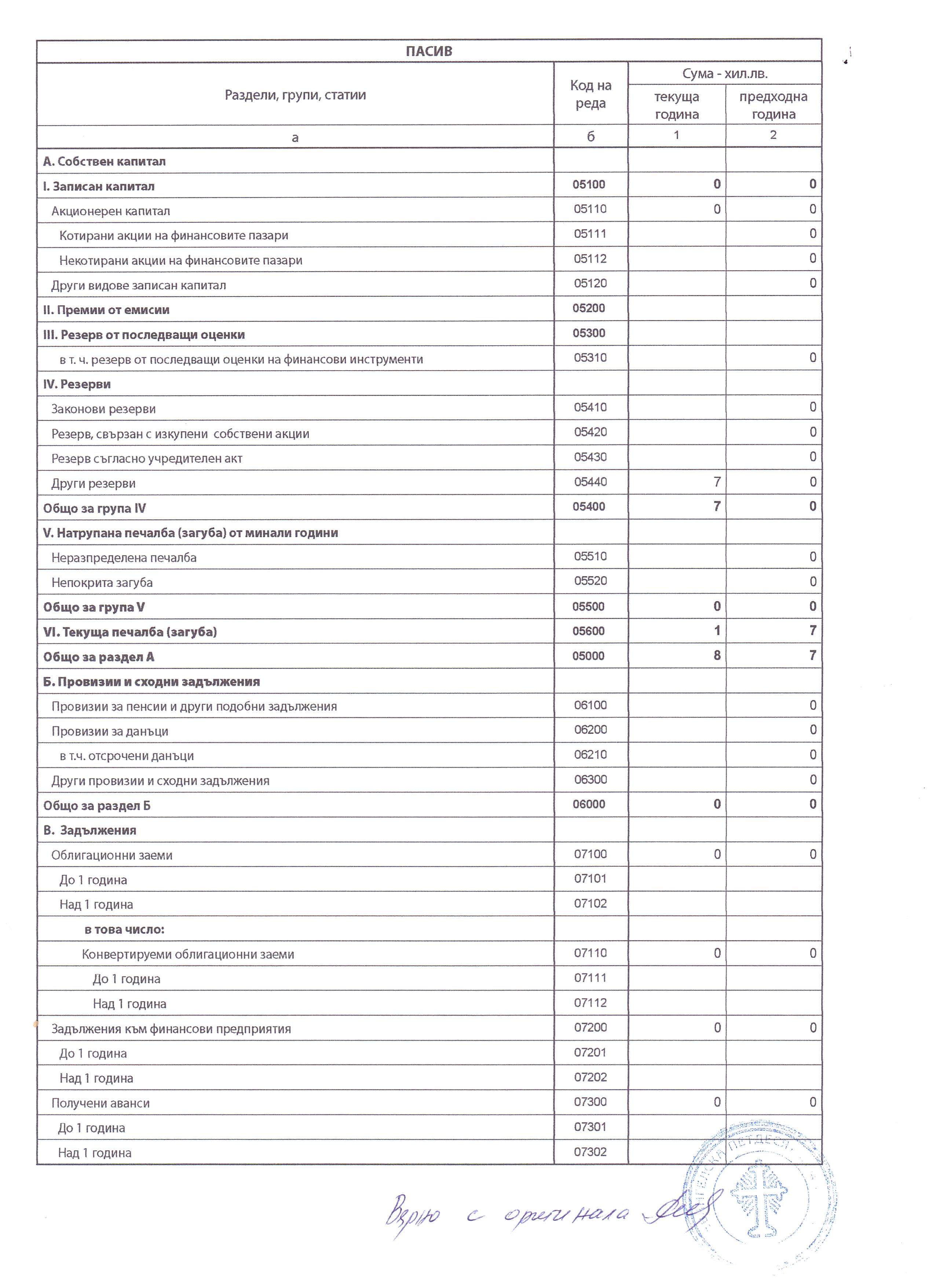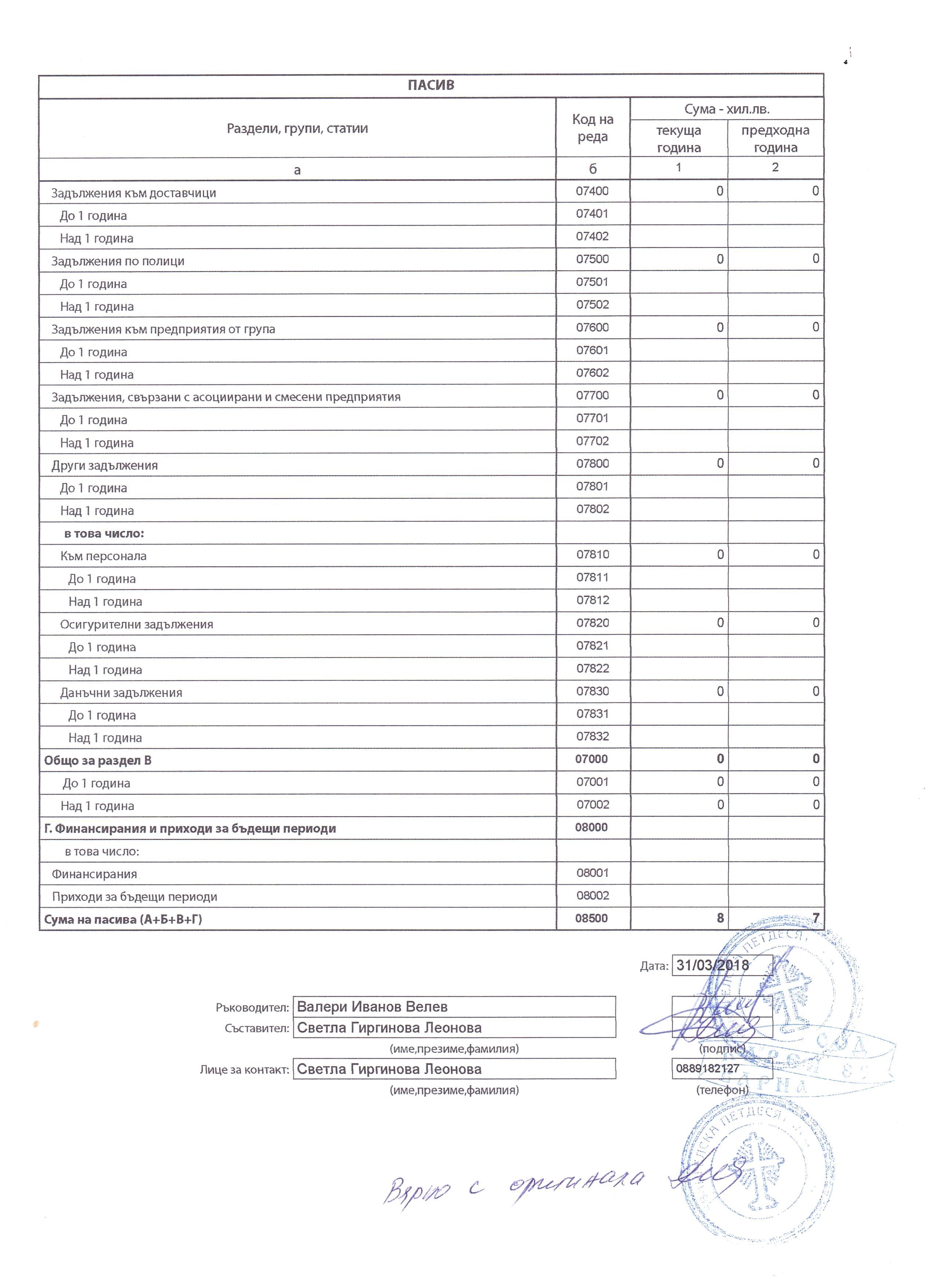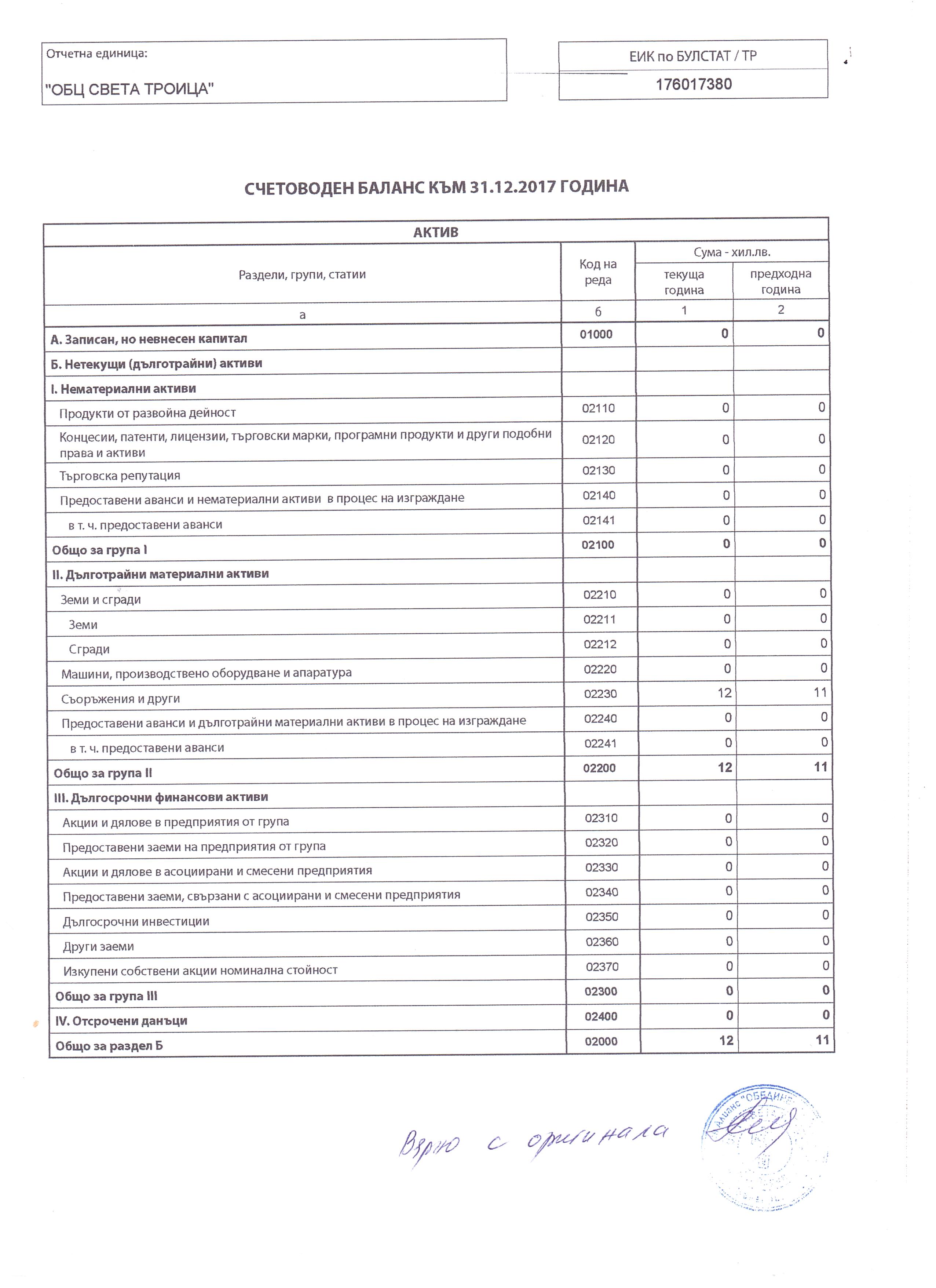 ГФО на 4 ПЛЮС АСЕНОВГРАД ДЗЗД за 2017 г.