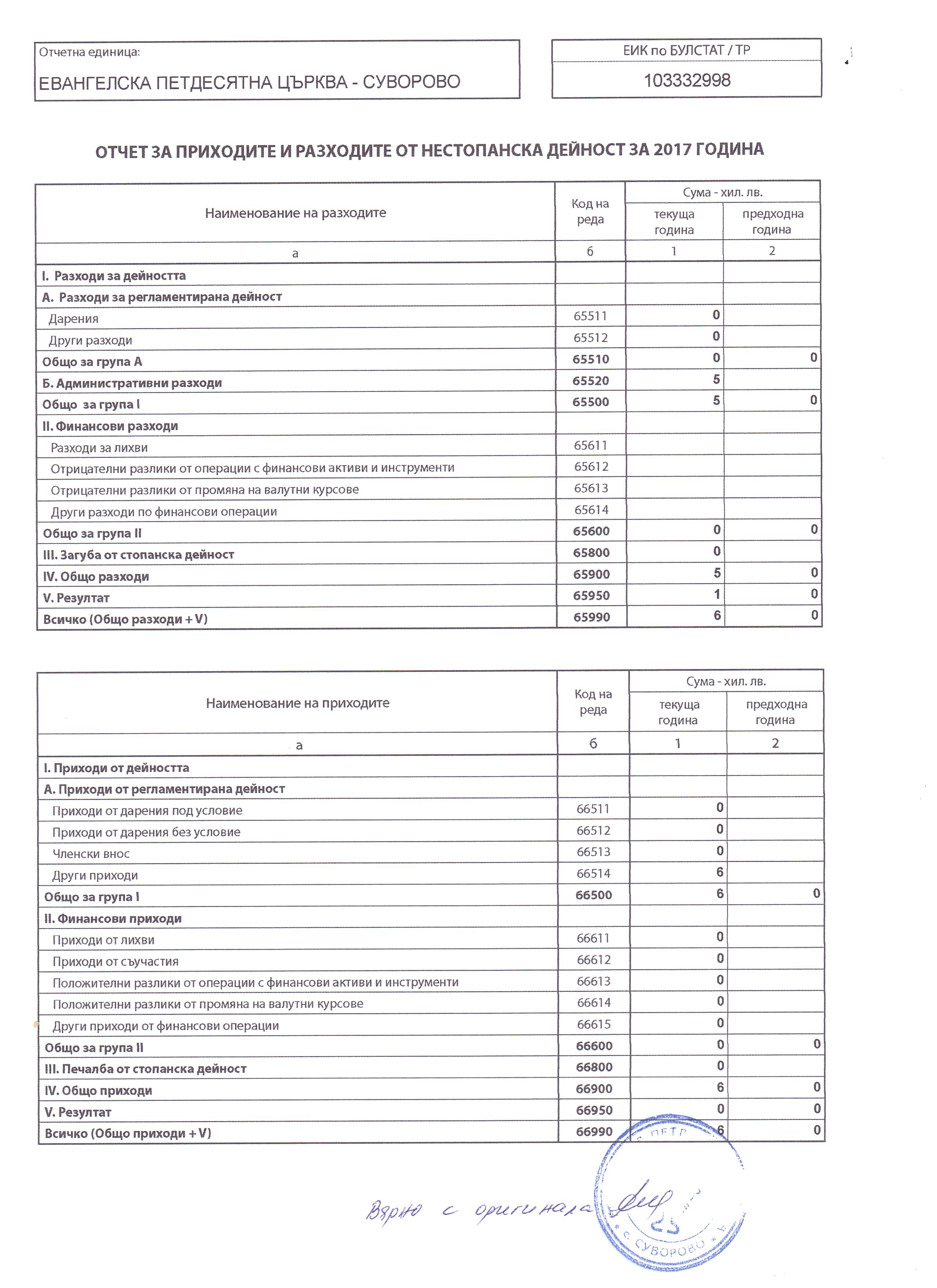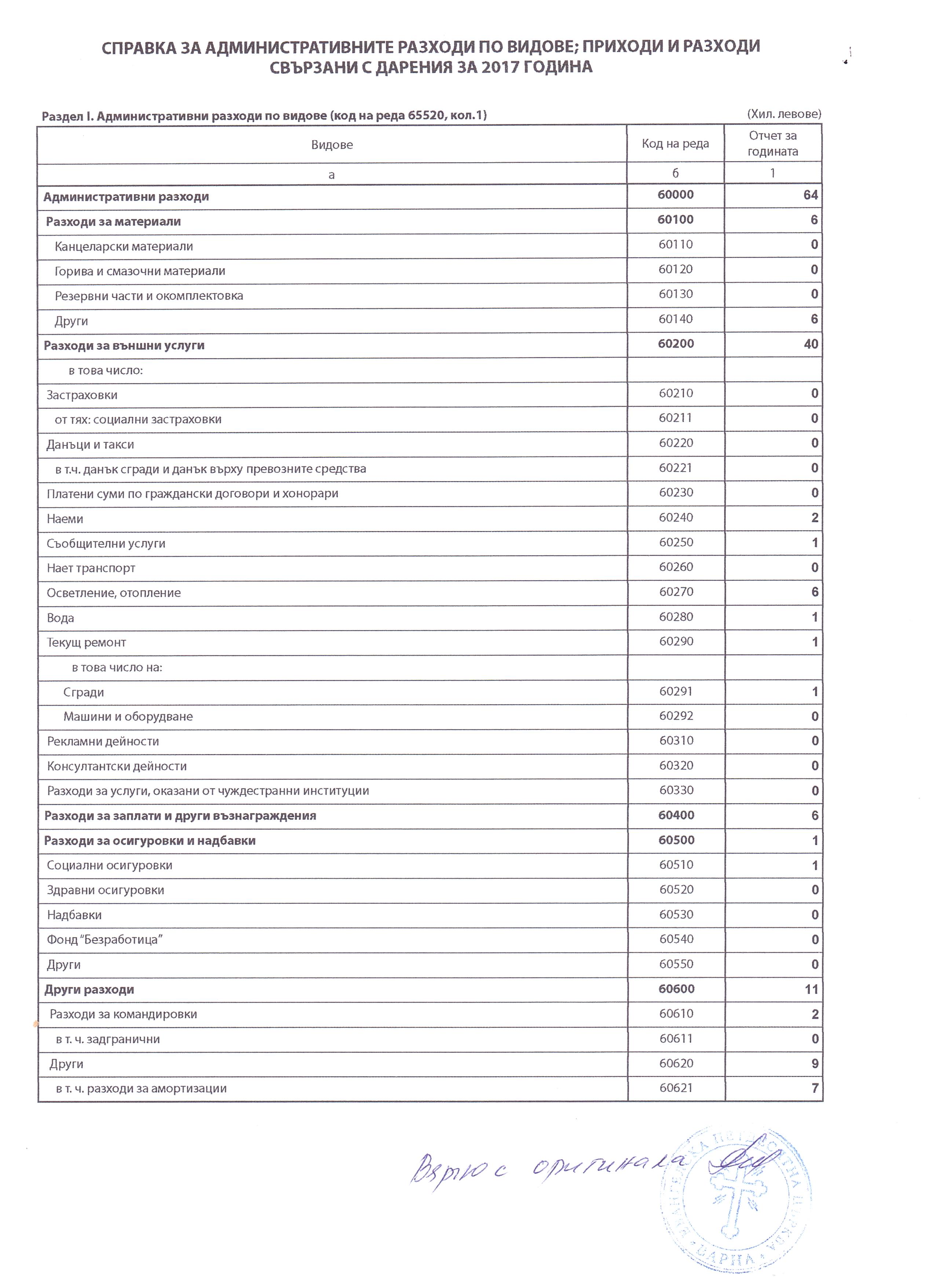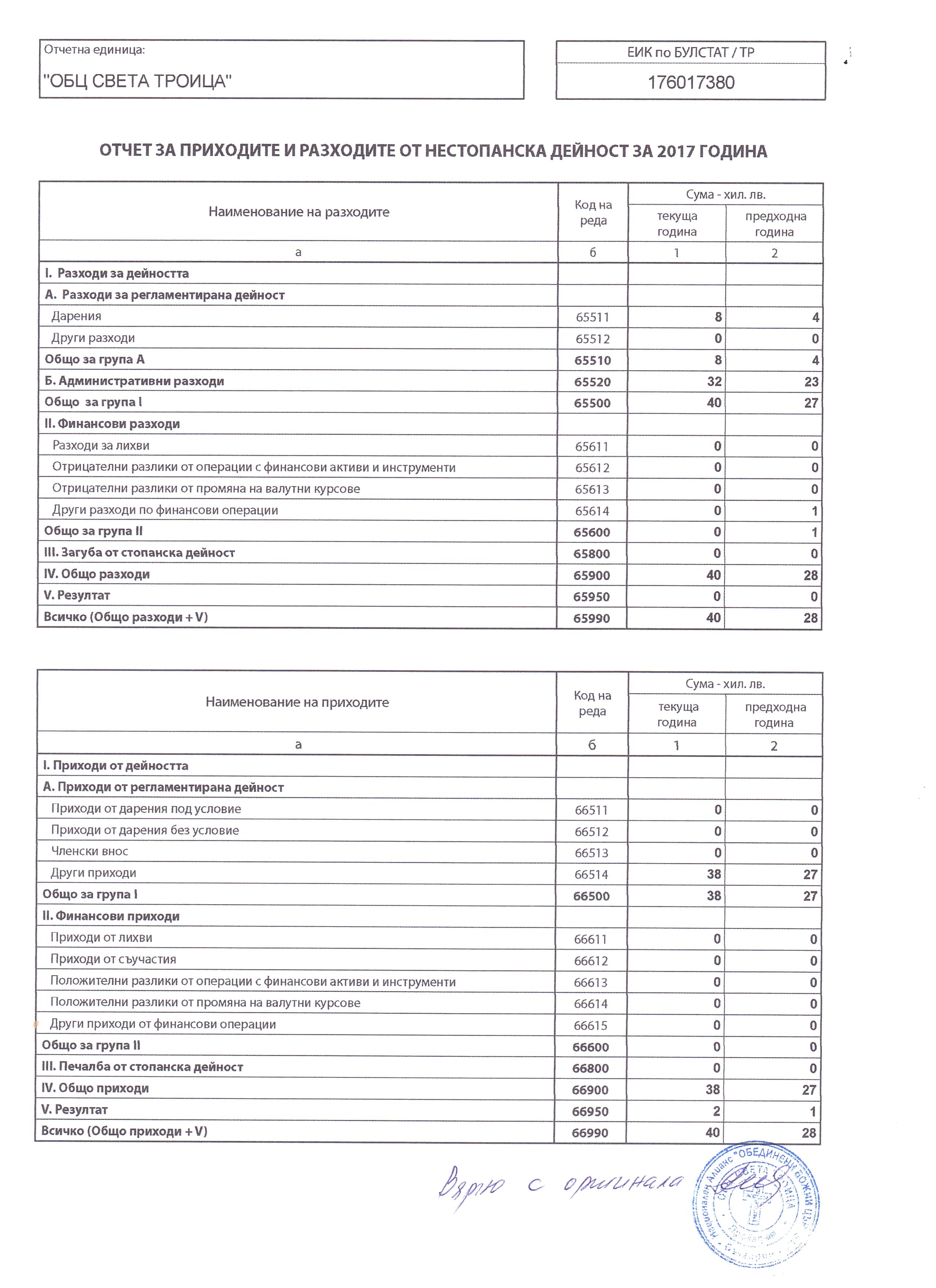 УЧИЛИЩНО НАСТОЯТЕЛСТВО ПРИ ОСНОВНО УЧИЛИЩЕ "СВ.ПАТРИАРХ ЕВТИМИЙ" за 2017 г.