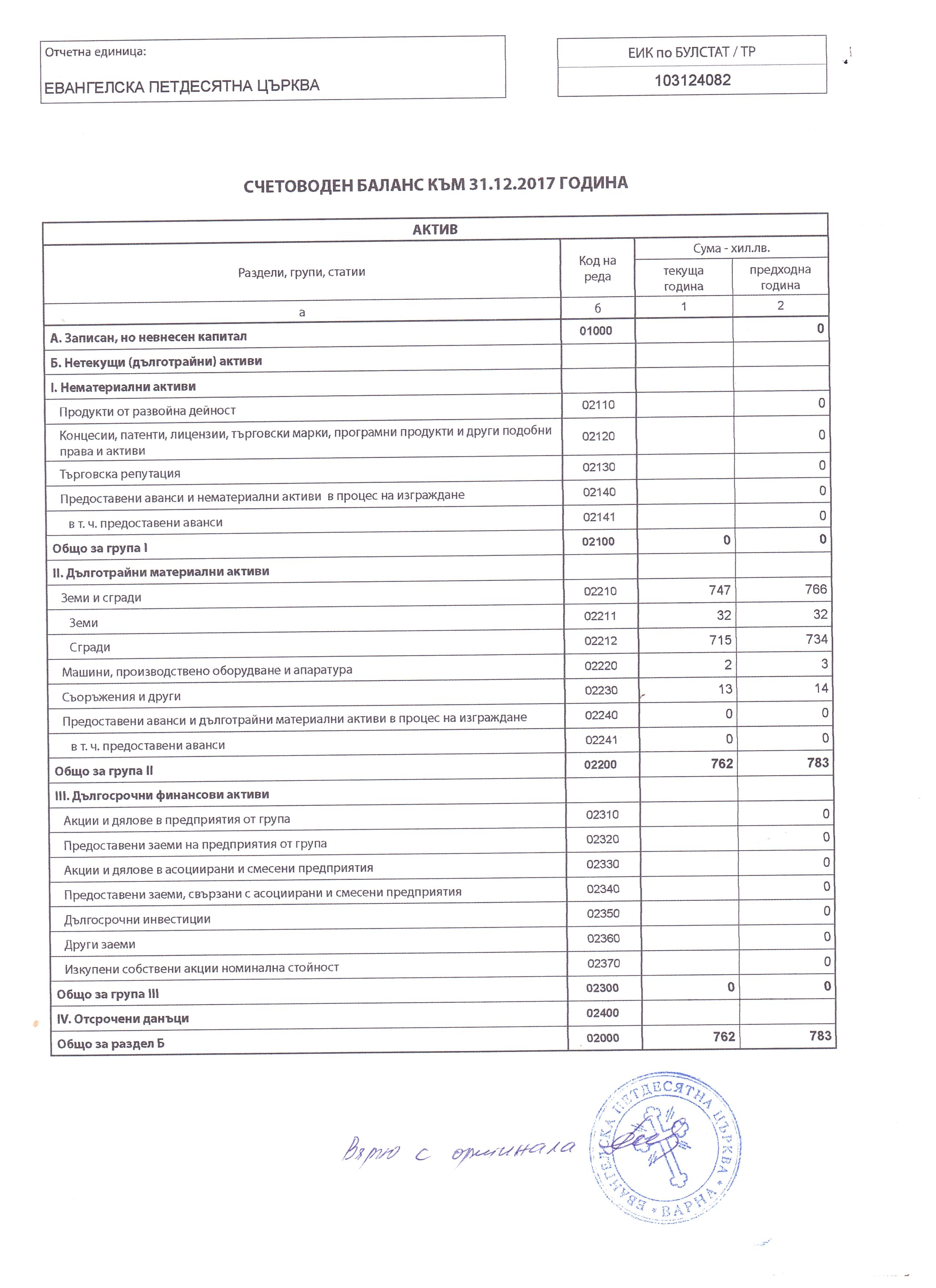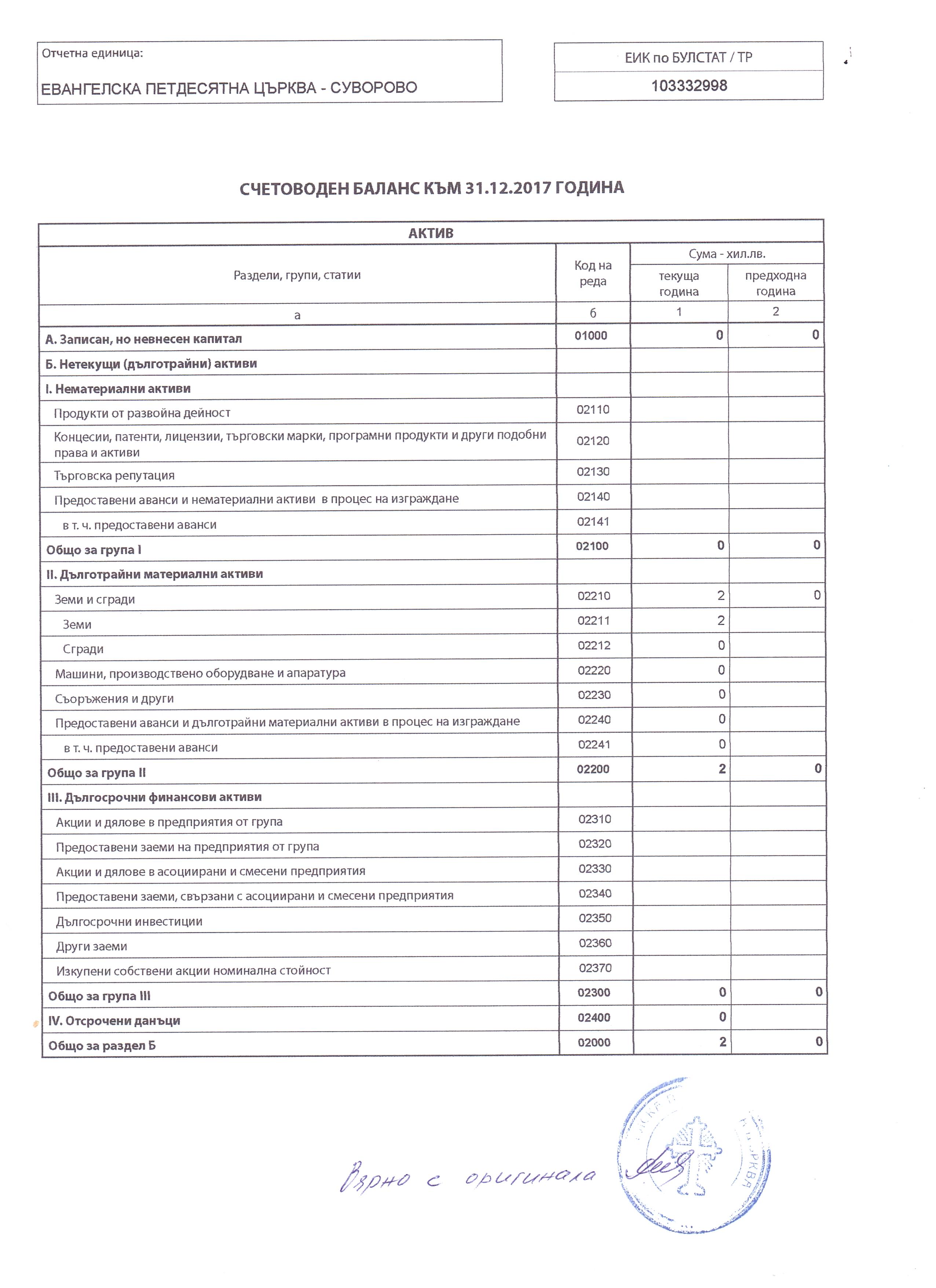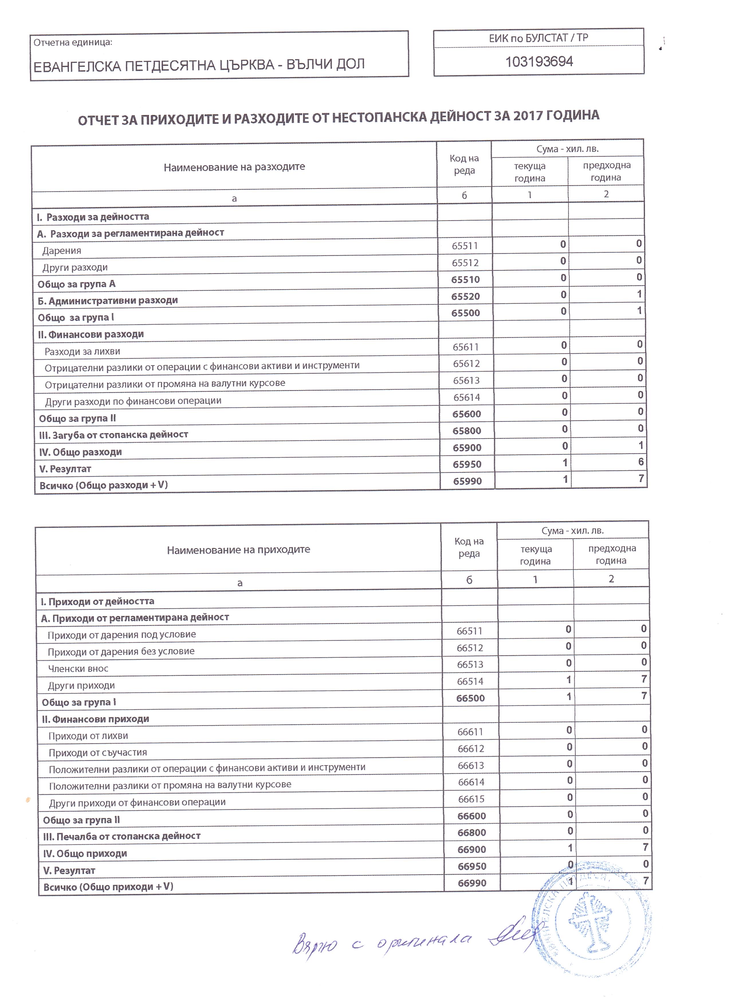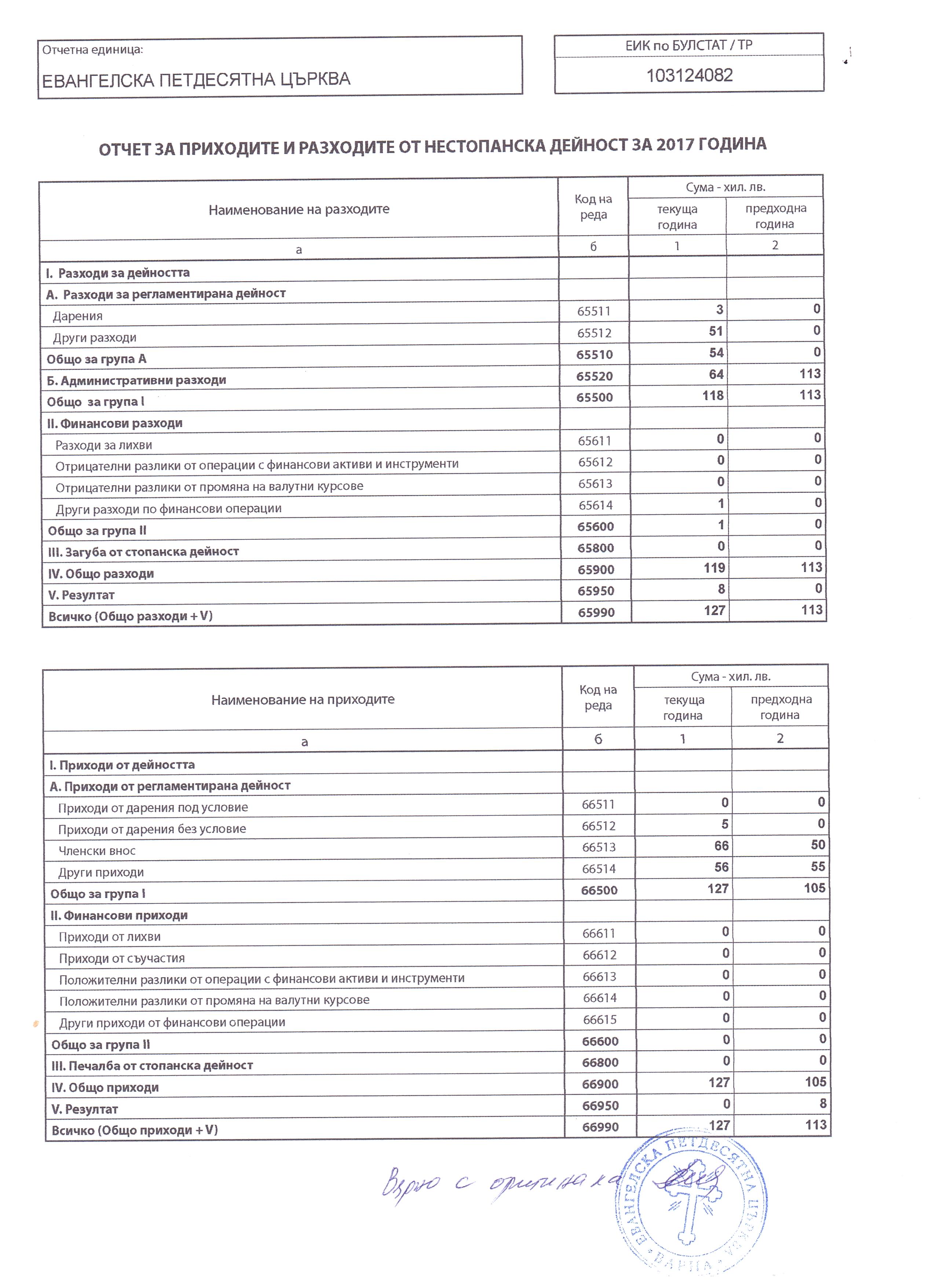 УЧИЛИЩНО НАСТОЯТЕЛСТВО ПРИ ОСНОВНО УЧИЛИЩЕ "СВ.ПАТРИАРХ ЕВТИМИЙ" за 2017 г.
