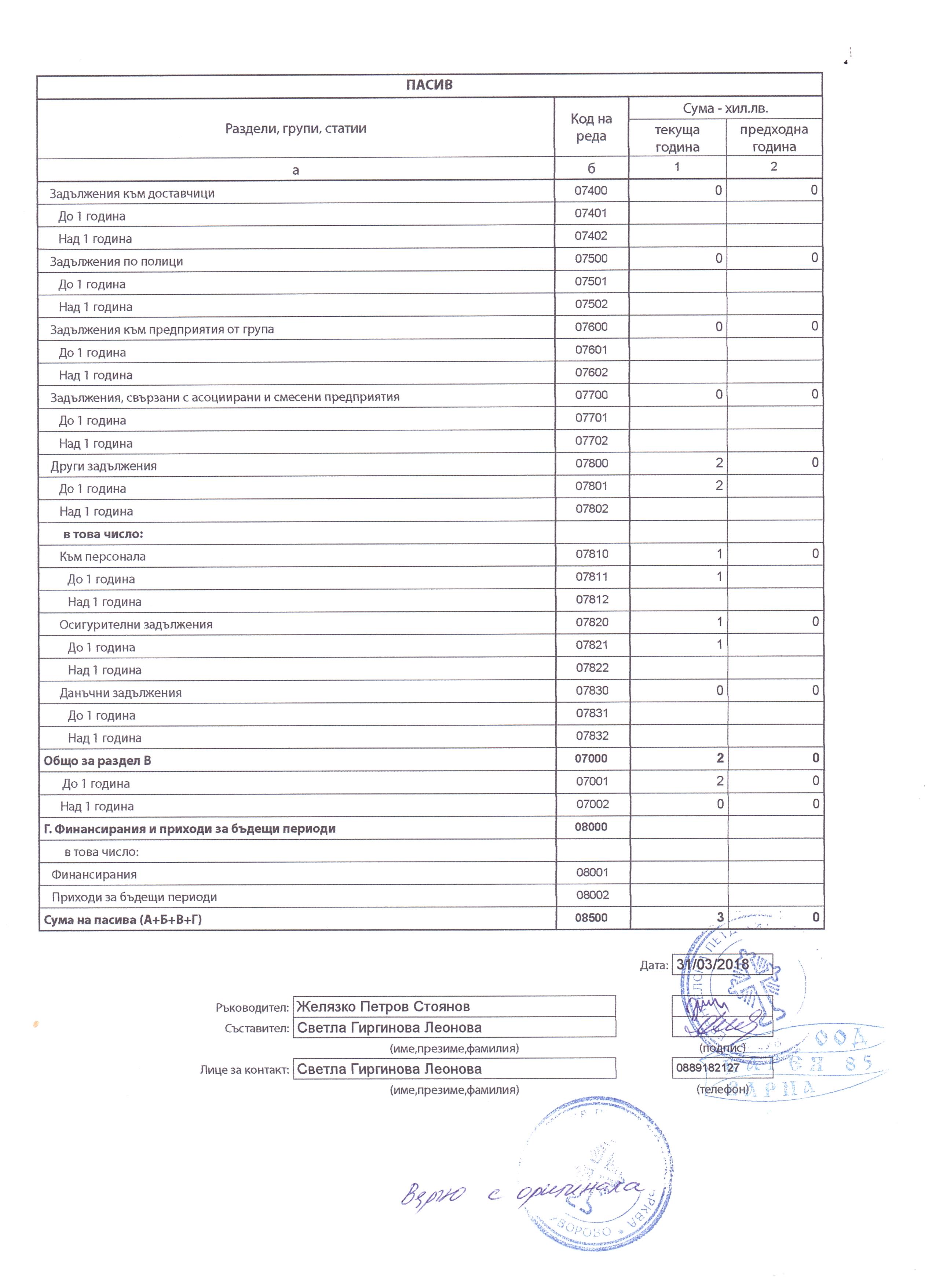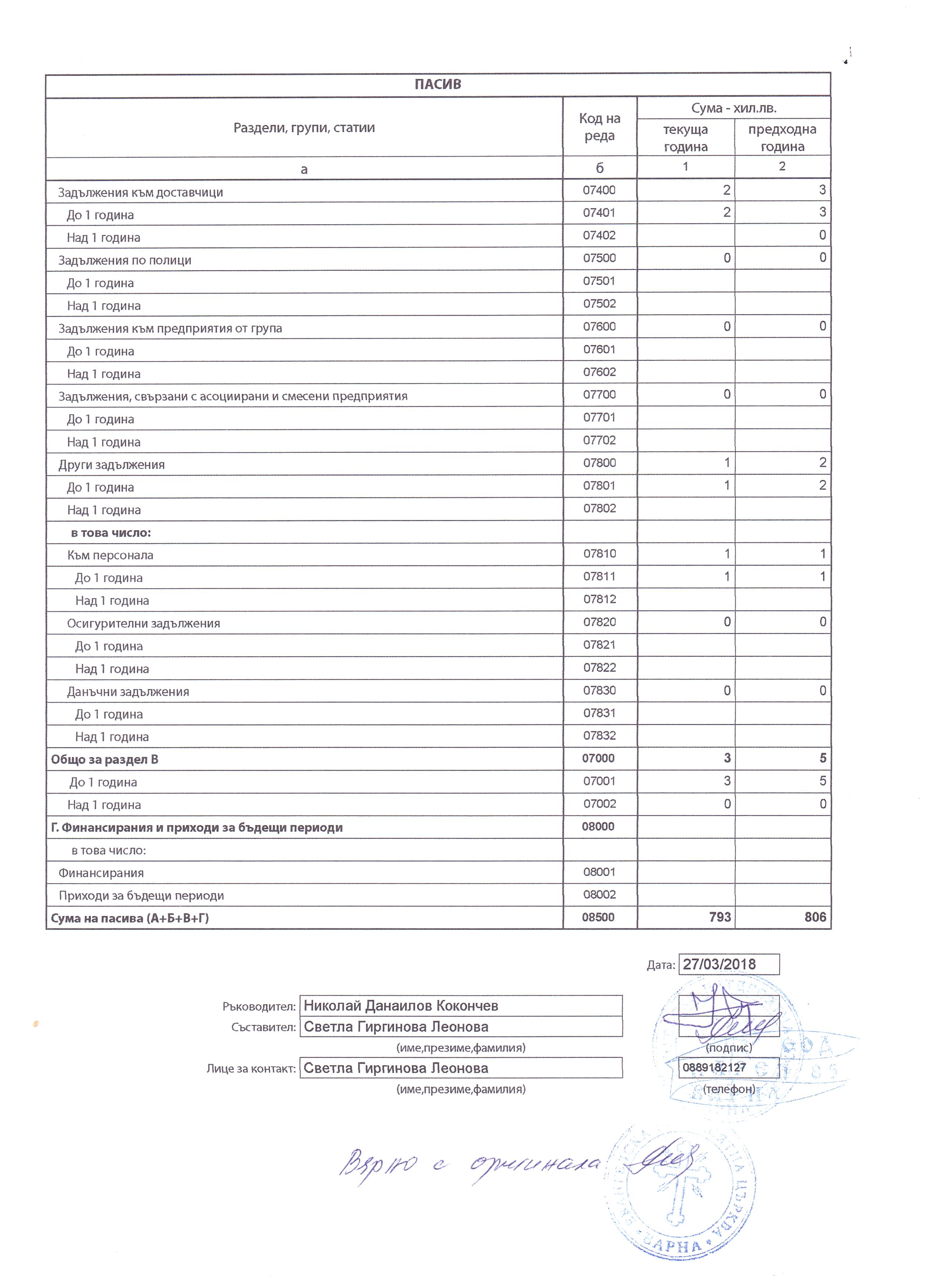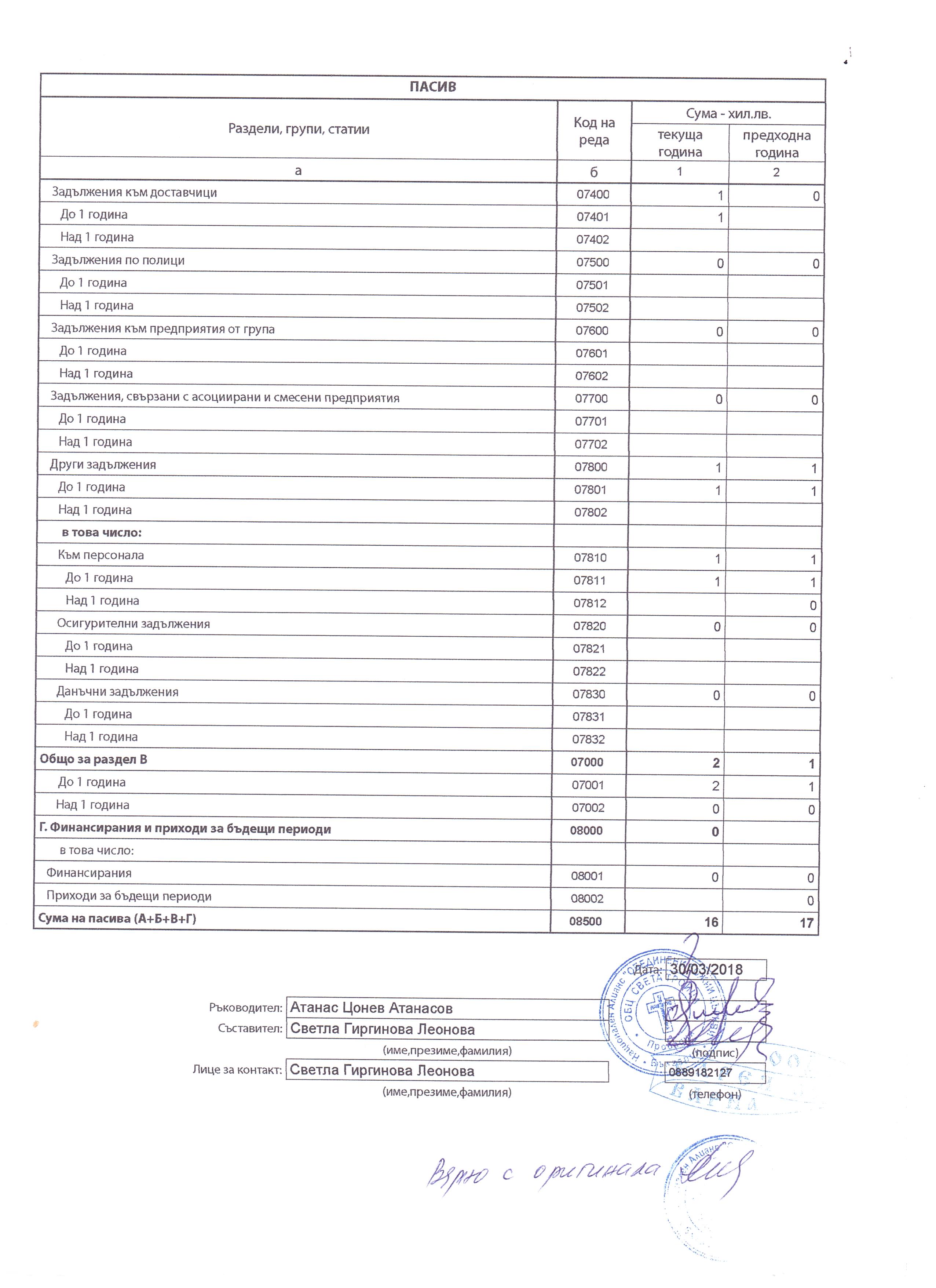 ГФО на АДВОКАТСКО СЪДРУЖИЕ РАШКОВИ за 2017 г.
