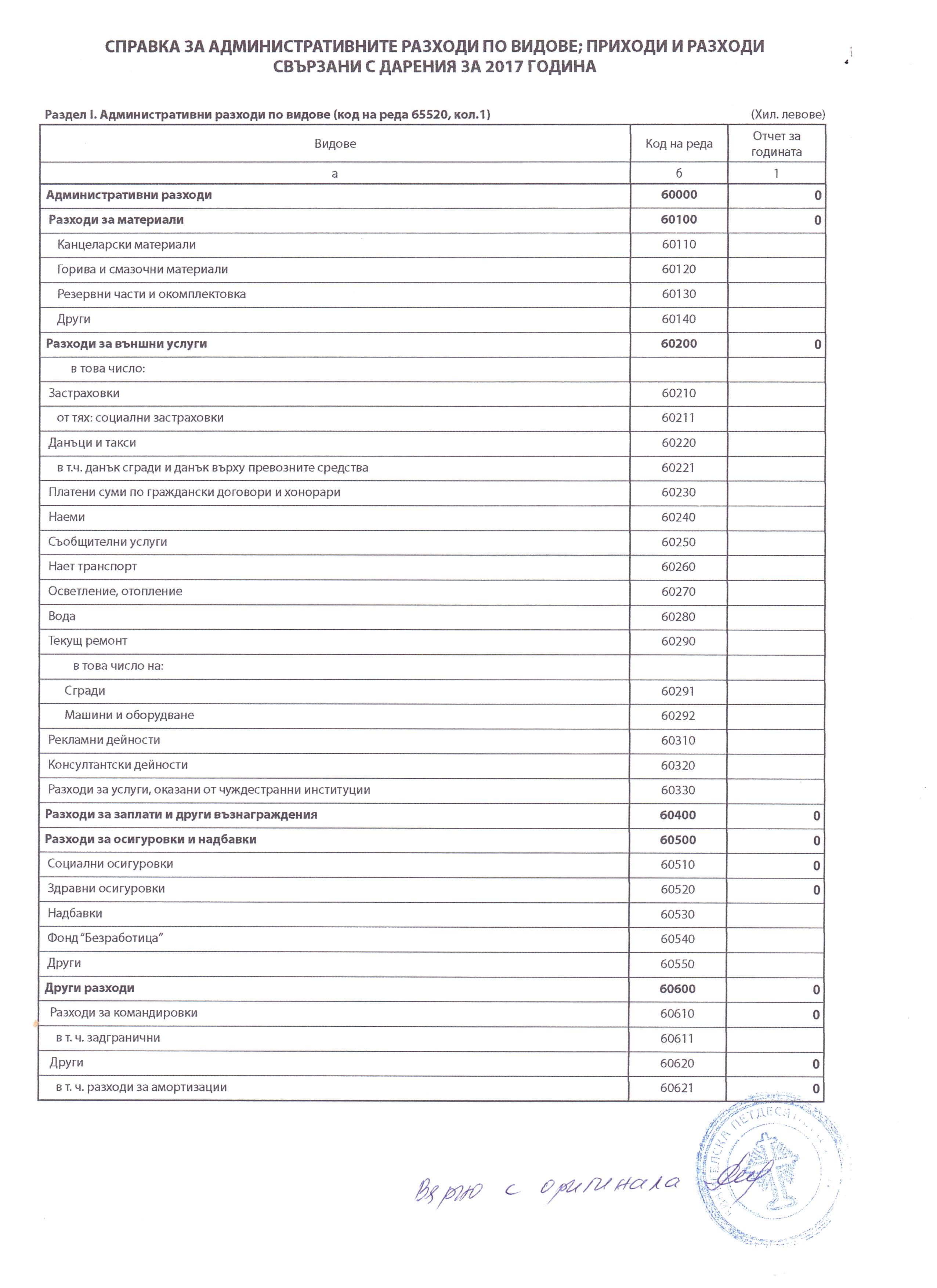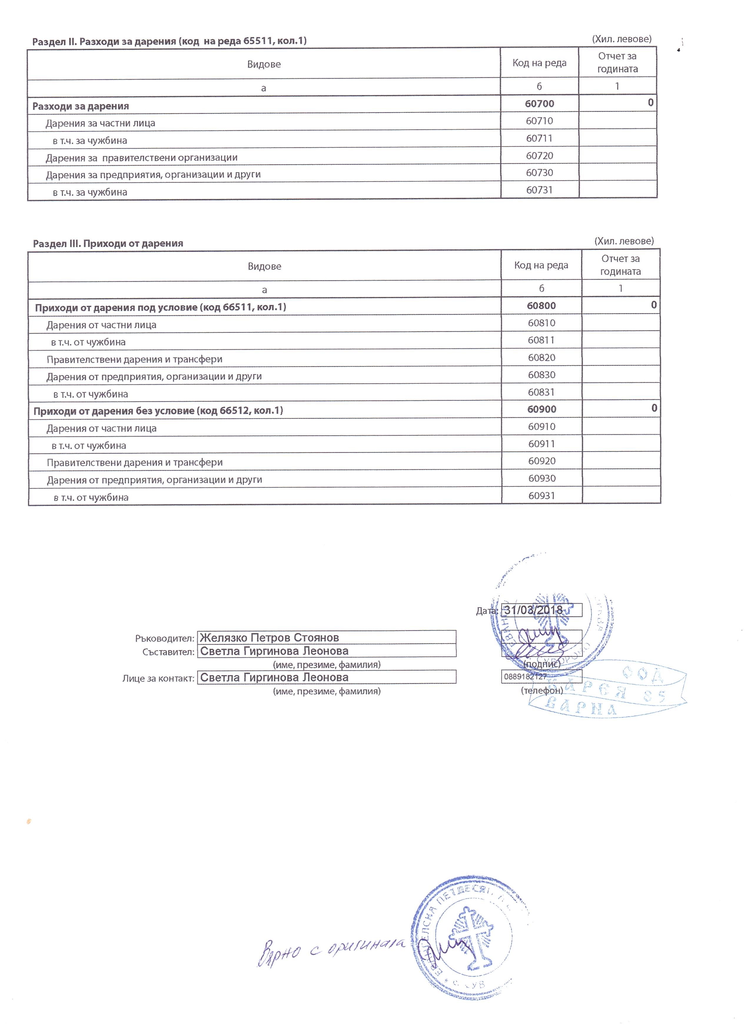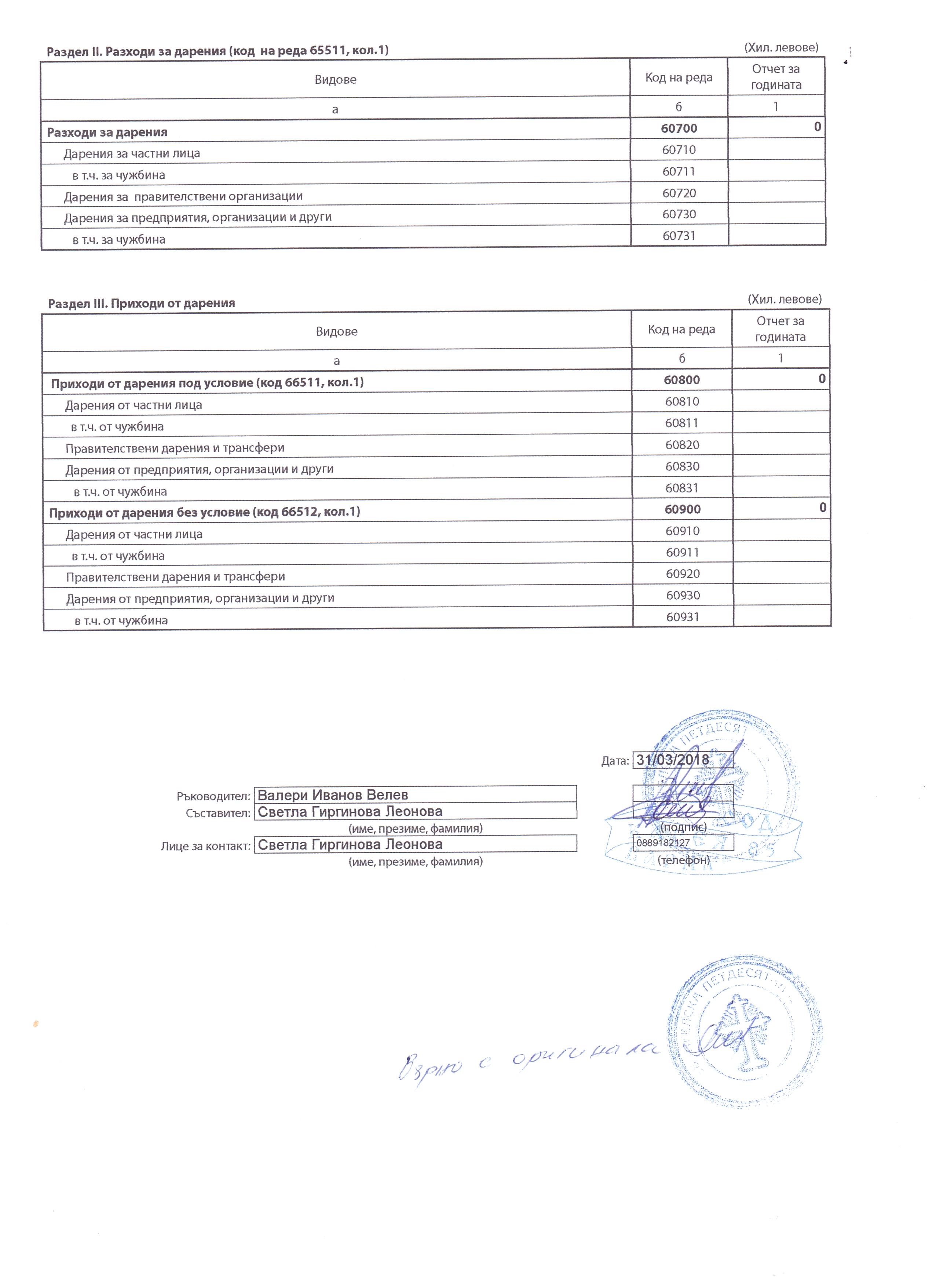 ГФО на УЧИЛИЩНО НАСТОЯТЕЛСТВО ПРИ ОУ "Д-Р ПЕТЪР БЕРОН" ГР. ДЕБЕЛЕЦ за 2017 г.