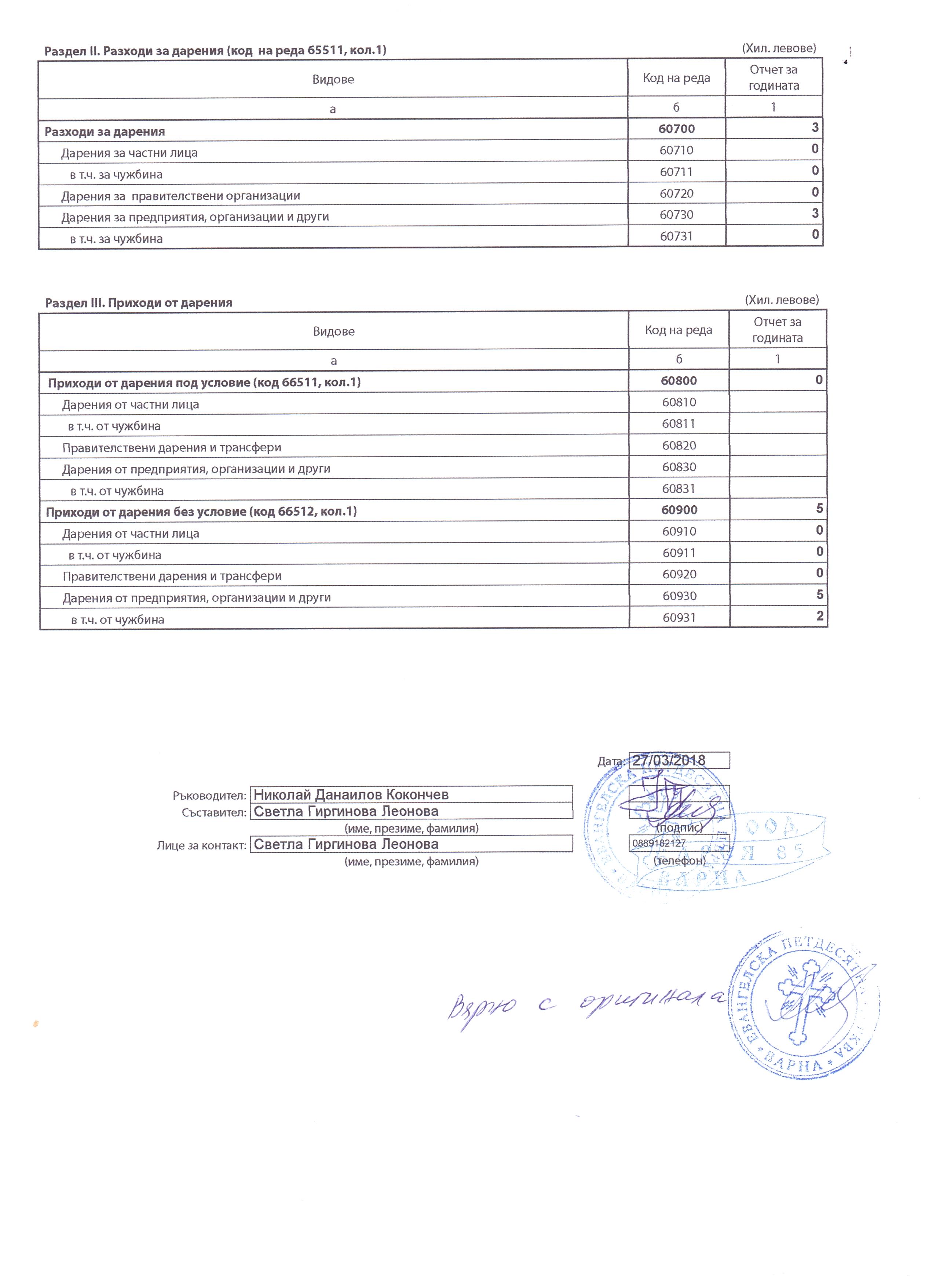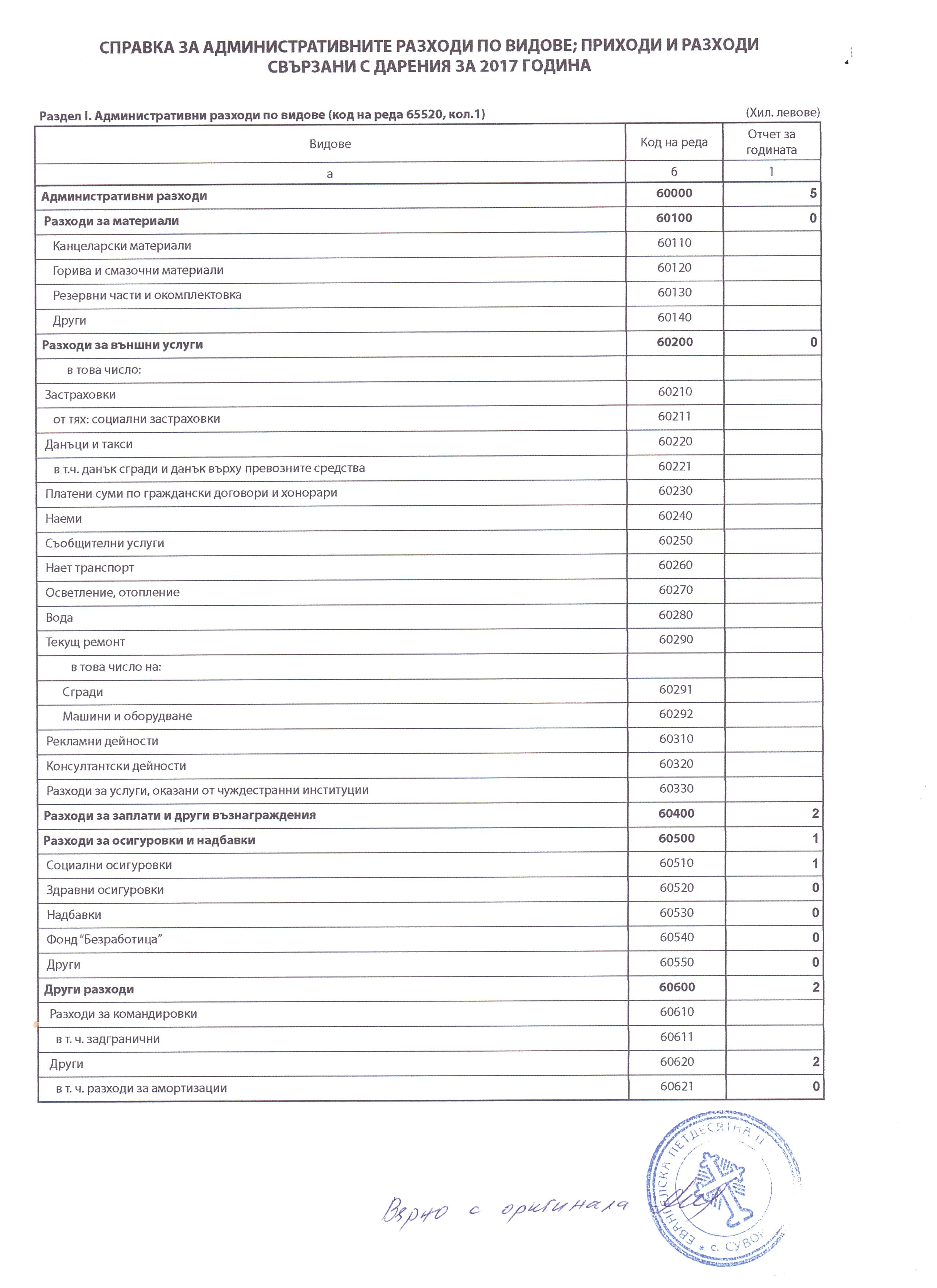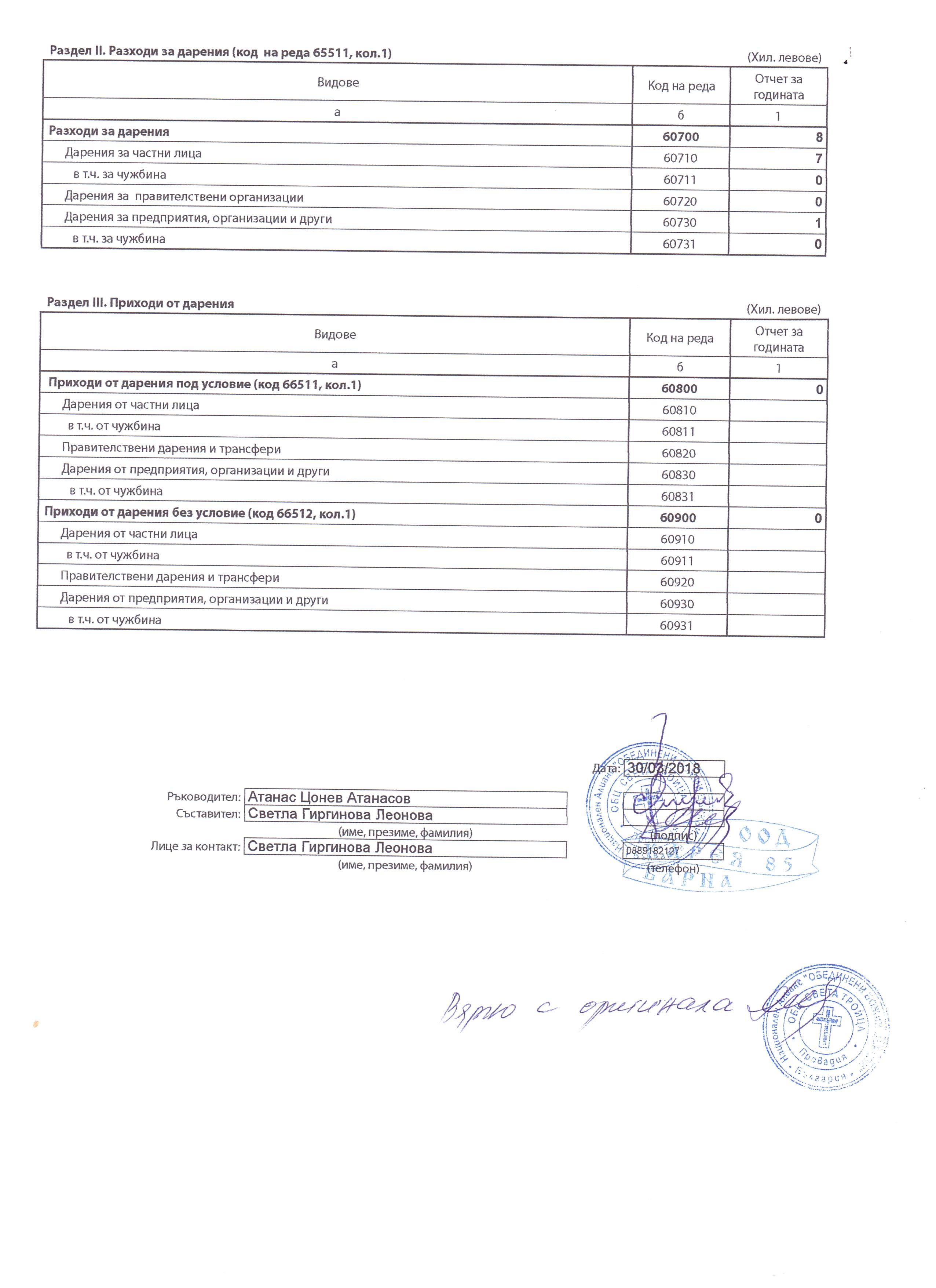 ГФО на УЧИЛИЩНО НАСТОЯТЕЛСТВО ПРИ ОУ "Д-Р ПЕТЪР БЕРОН" ГР. ДЕБЕЛЕЦ за 2017 г.
