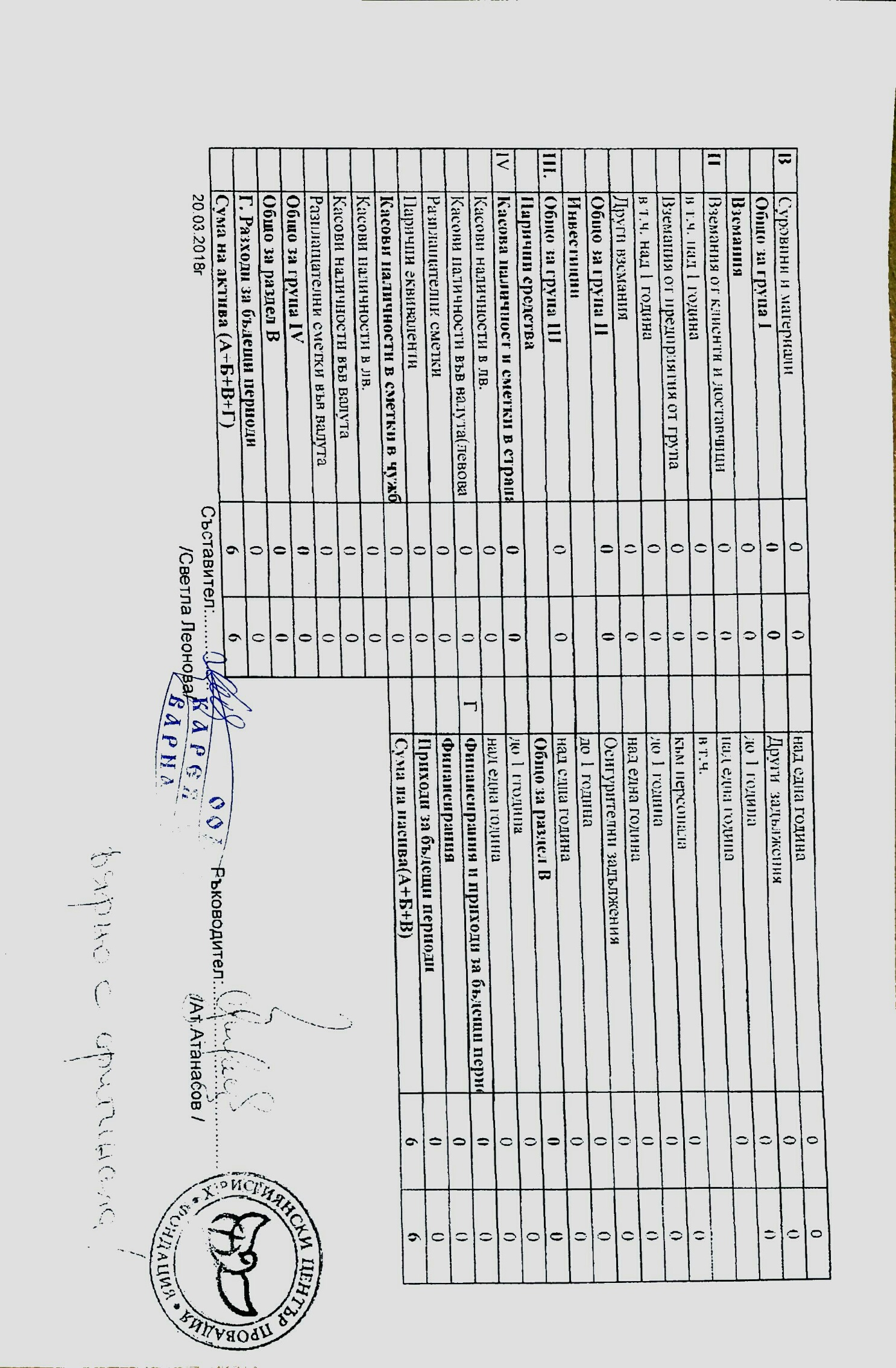 Съставител на отчета - Карамфилка Василева Костова