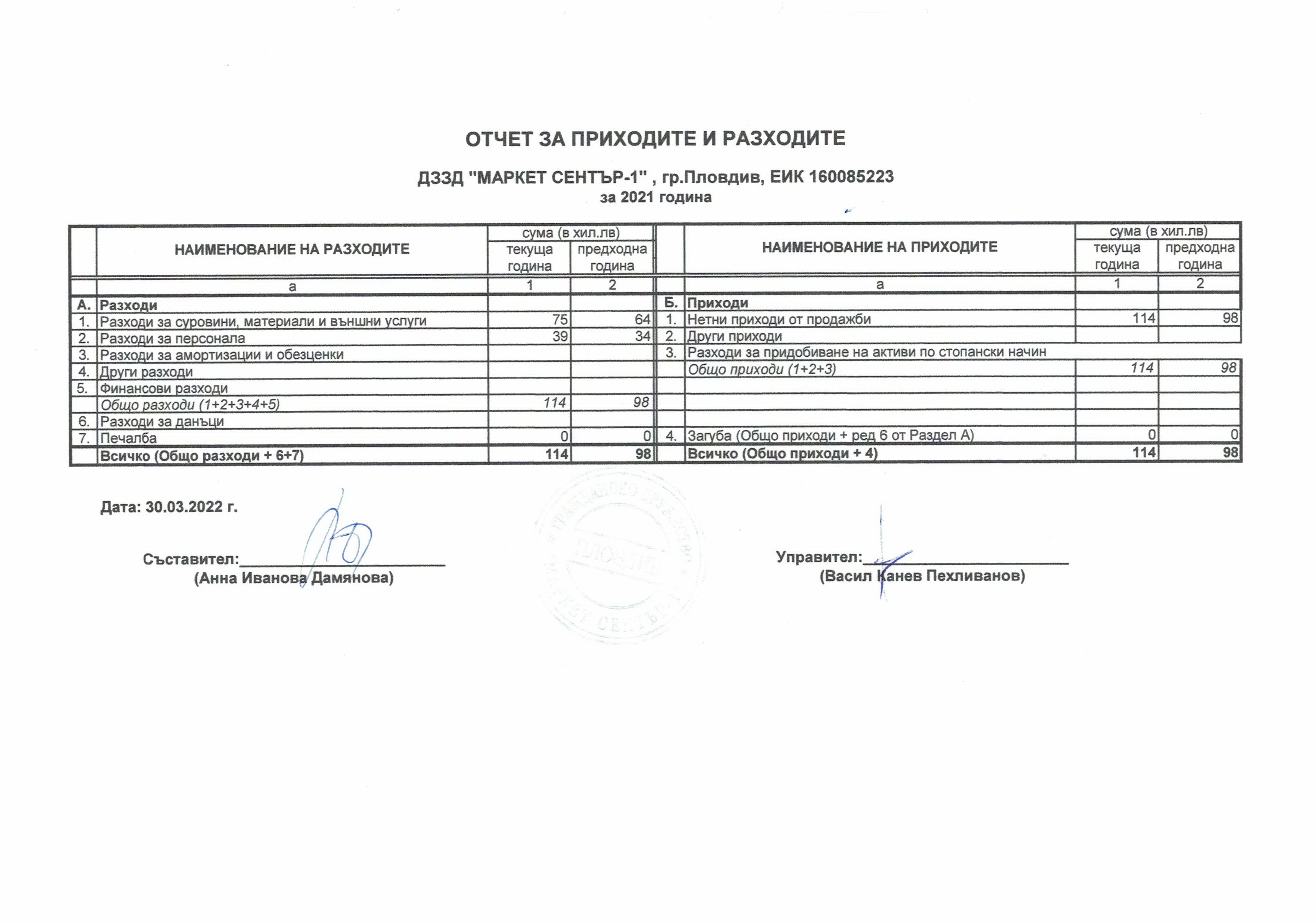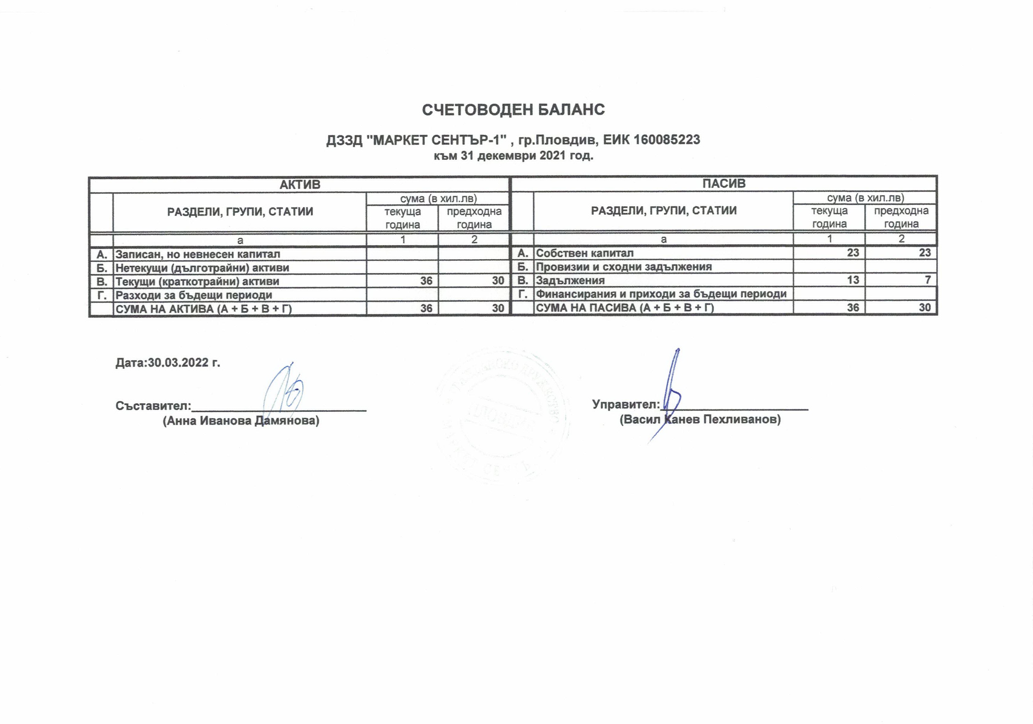 ГФО на АДВОКАТСКА КАНТОРА "МАРКОВА И ЛОЗЕВА" за 2021 г.